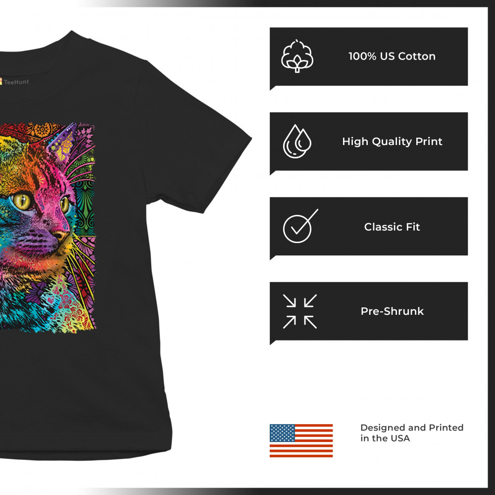 LOVABLE CAT youth t-shirt dean russo colorful felis catus pattern art kids black