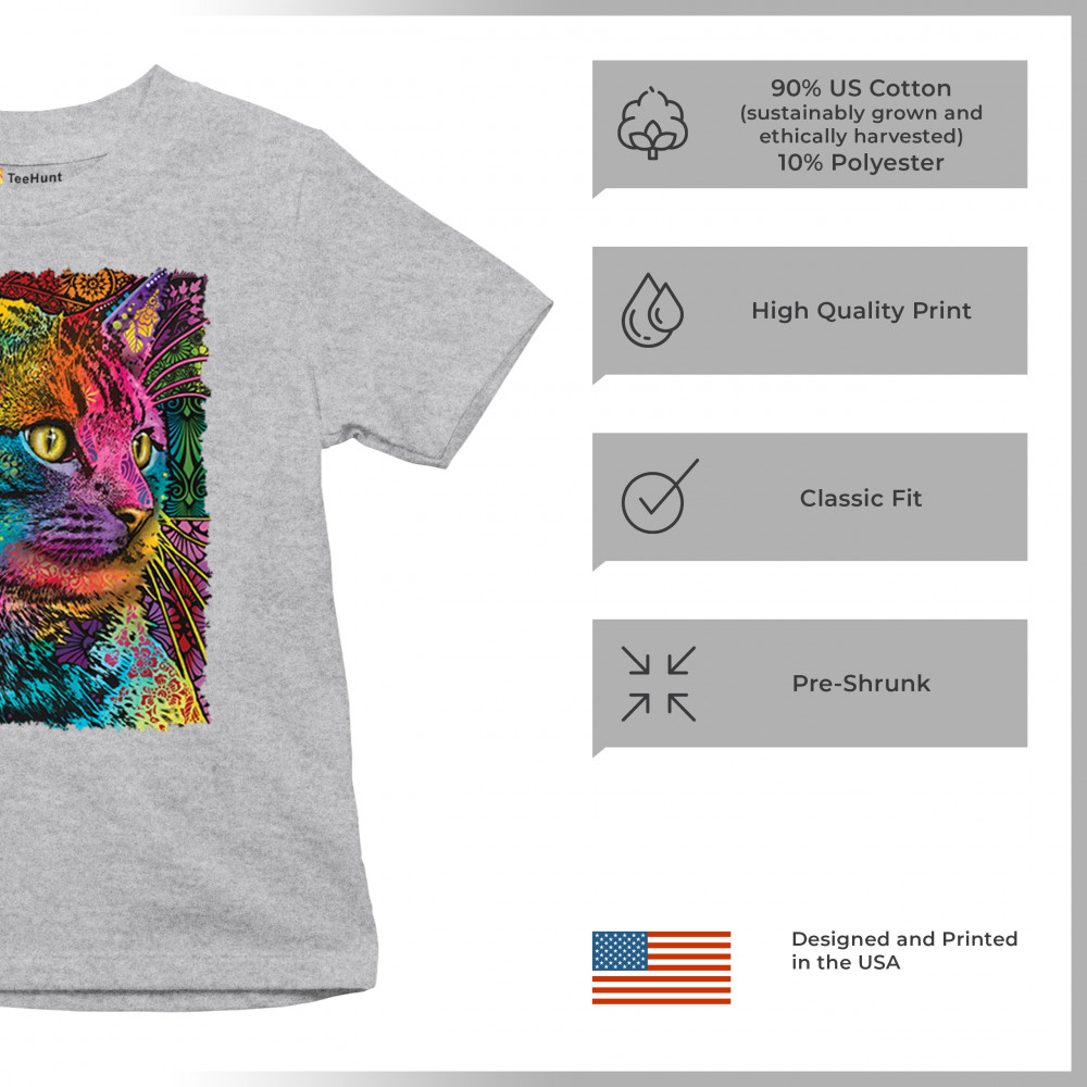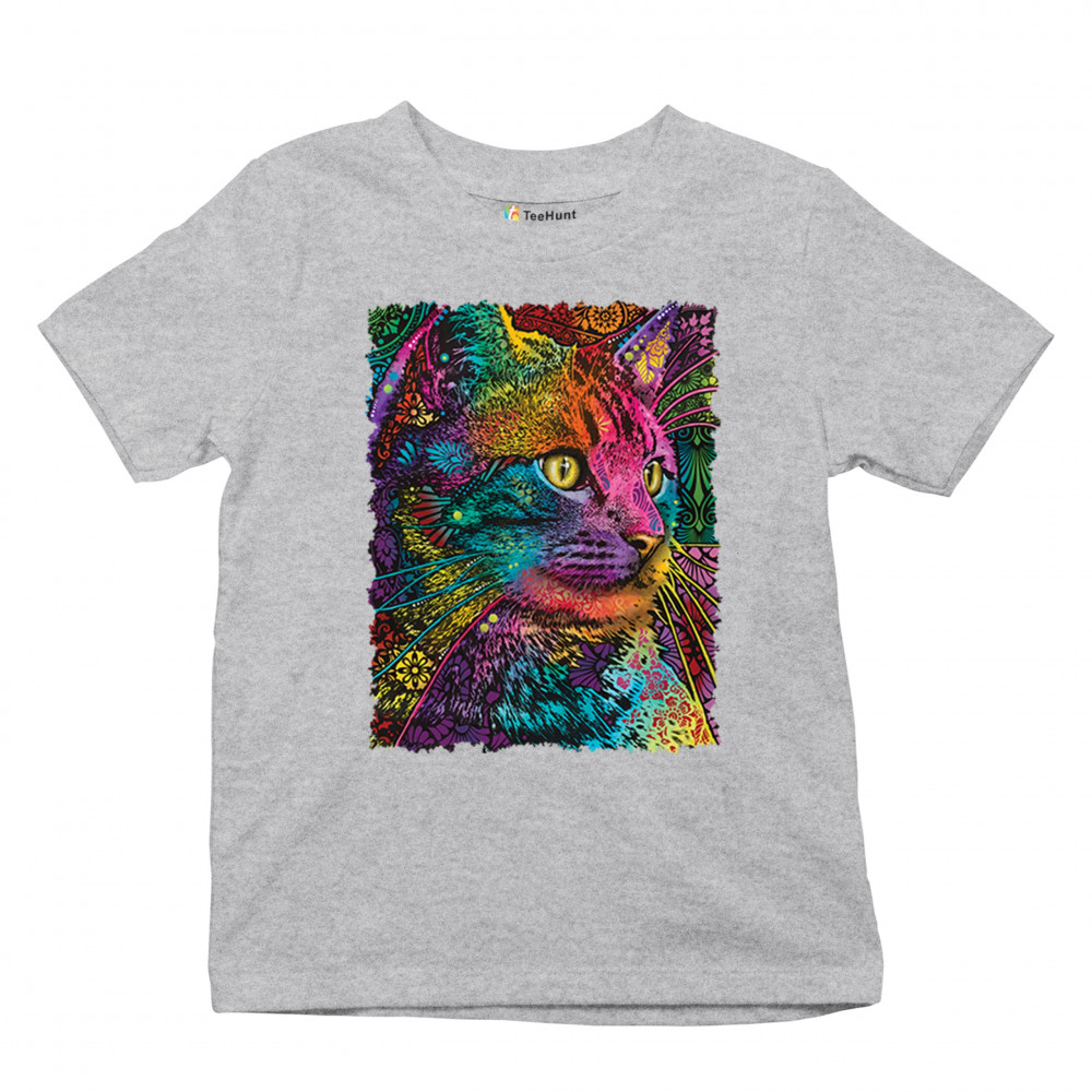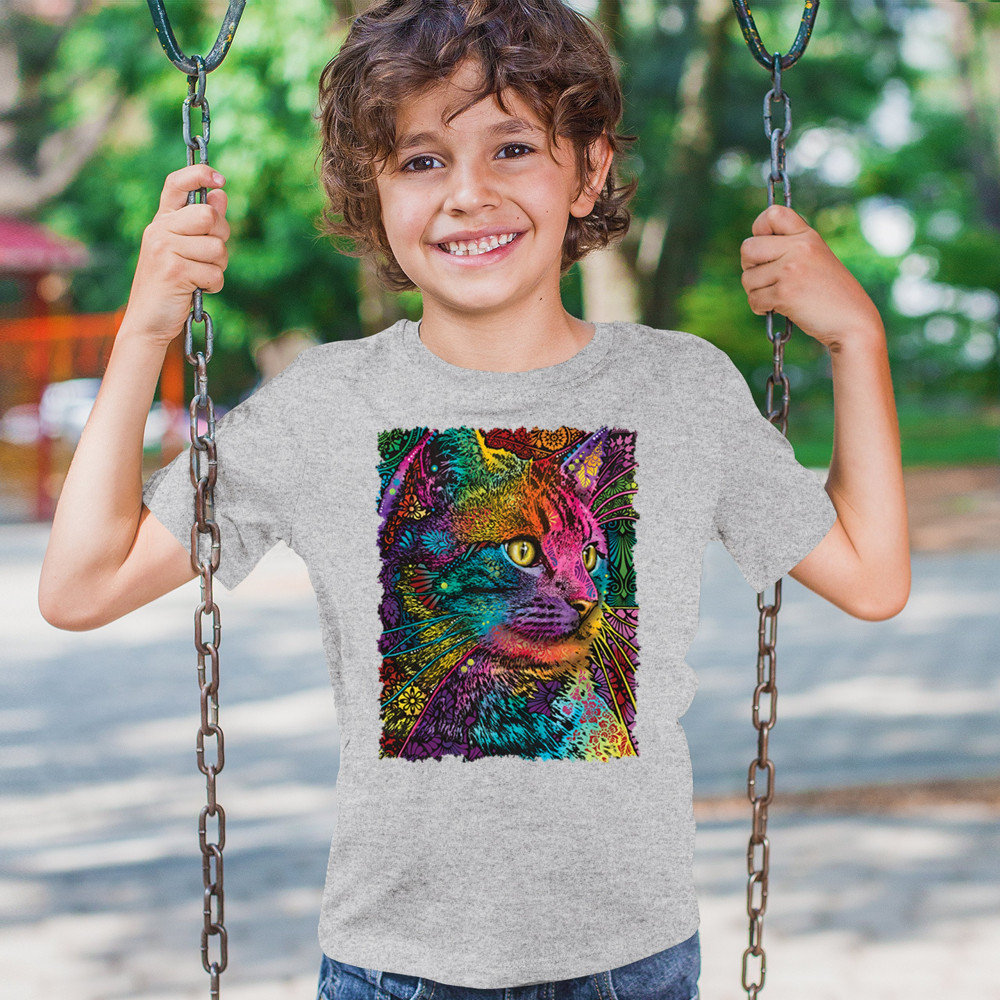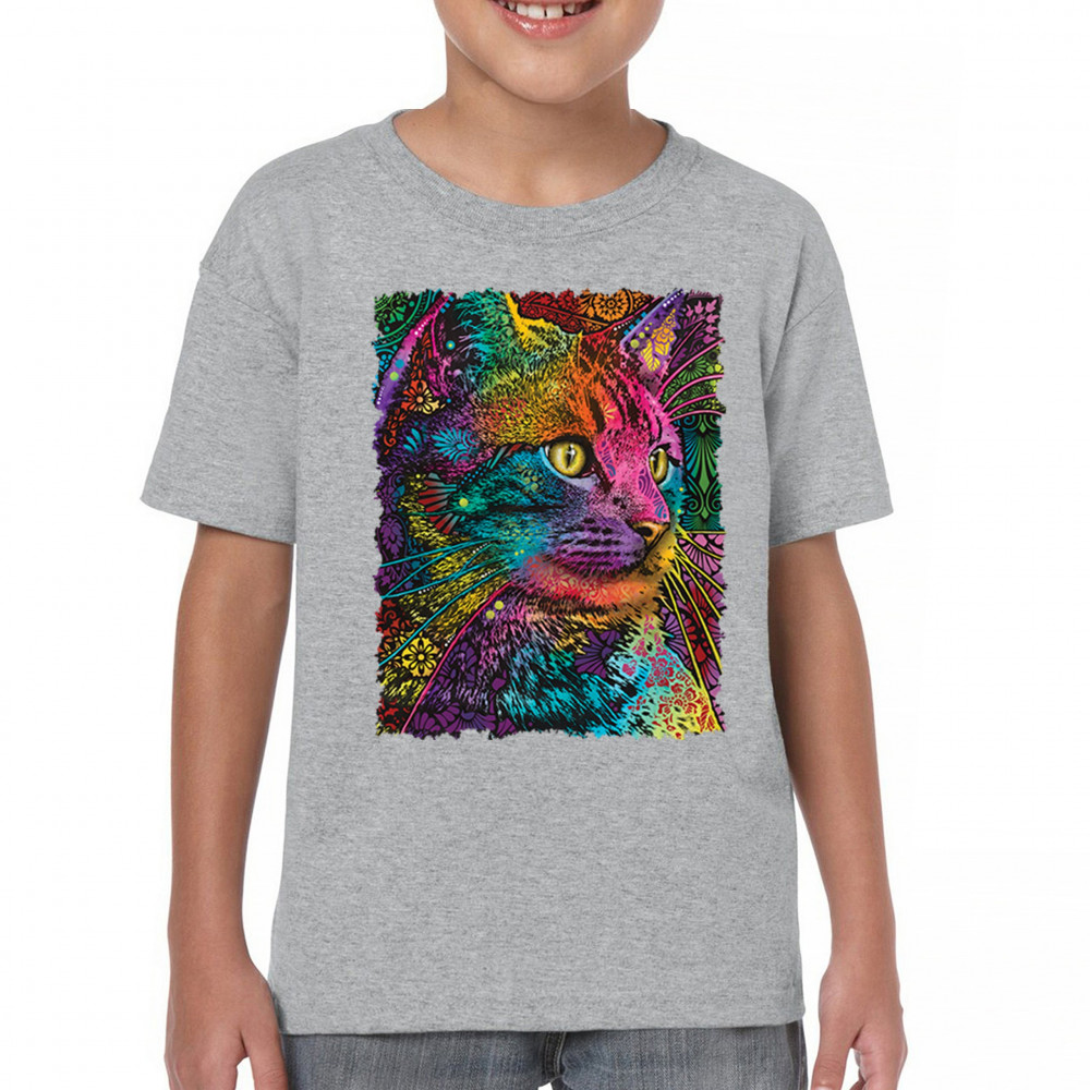 LOVABLE CAT youth t-shirt dean russo colorful felis catus pattern art kids gray