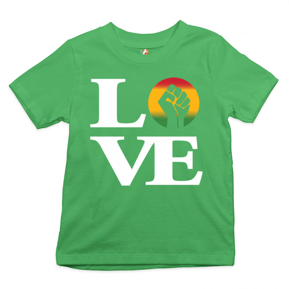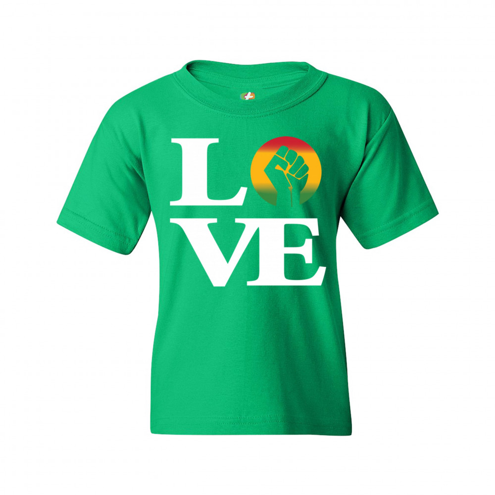 LOVE POWER FIST youth t-shirt black lives matter african american kids green