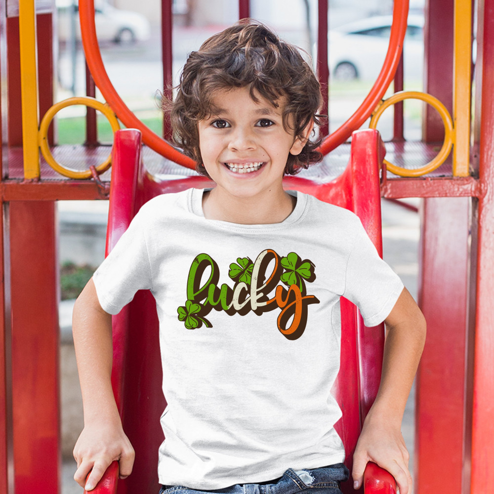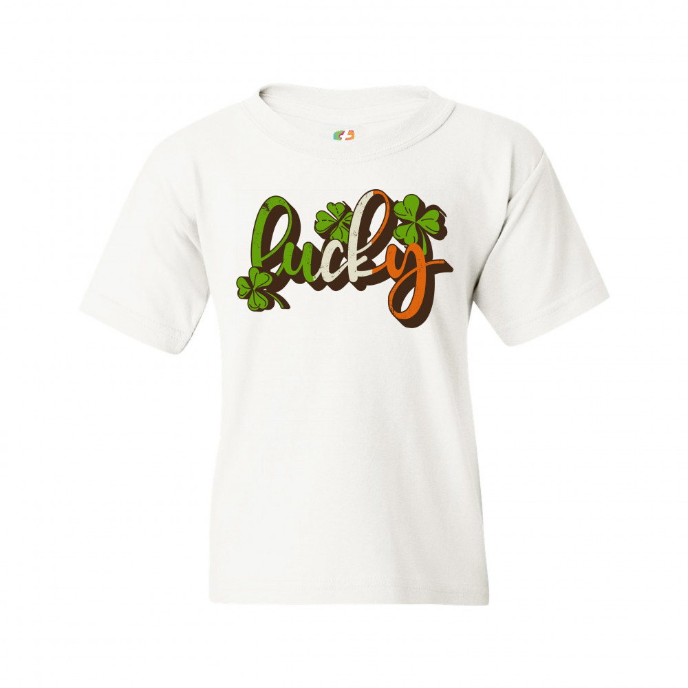 LUCKY youth t-shirt irish st. patrick's day leprechaun elves shenanigans kids white