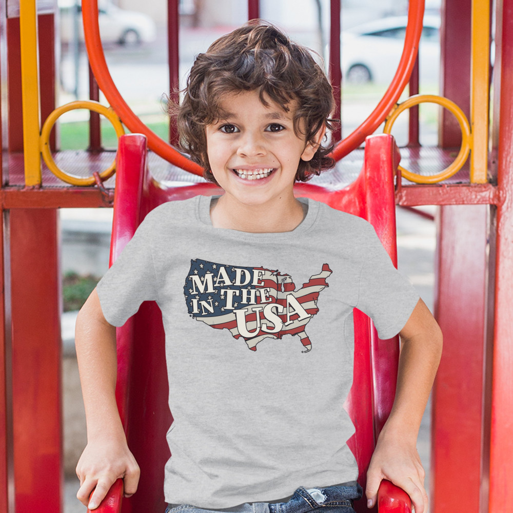 MADE IN THE USA youth t-shirt american flag independence day 4th of july kids gray