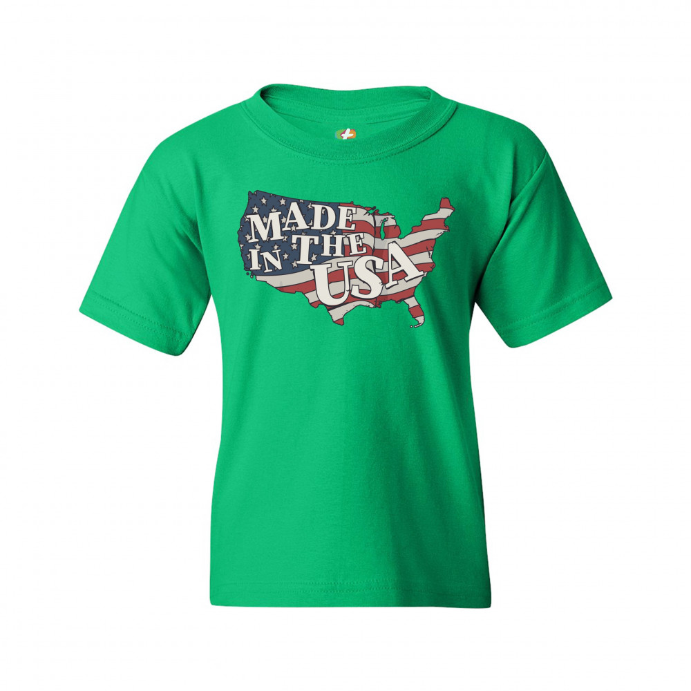 MADE IN THE USA youth t-shirt american flag independence day 4th of july kids green
