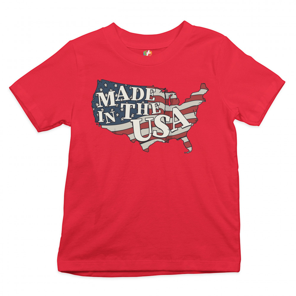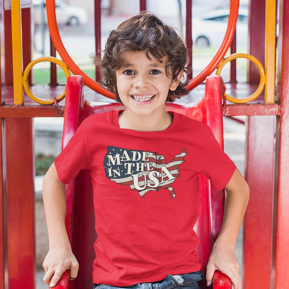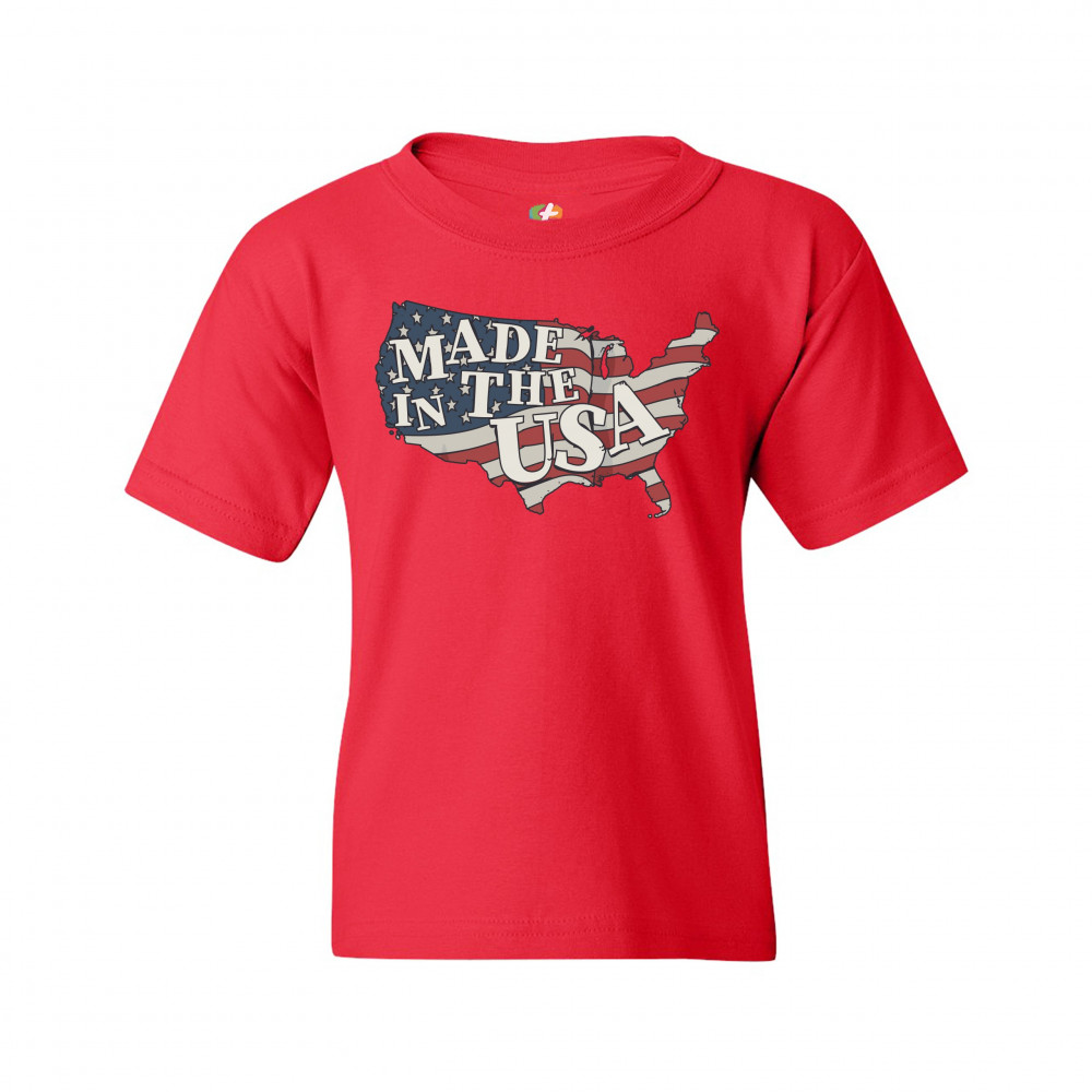 MADE IN THE USA youth t-shirt american flag independence day 4th of july kids red