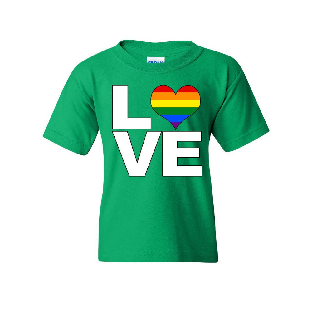 MAKE LOVE GAY PRIDE LGBTQ RAINBOW youth t-shirt equal rights tolerance tee green
