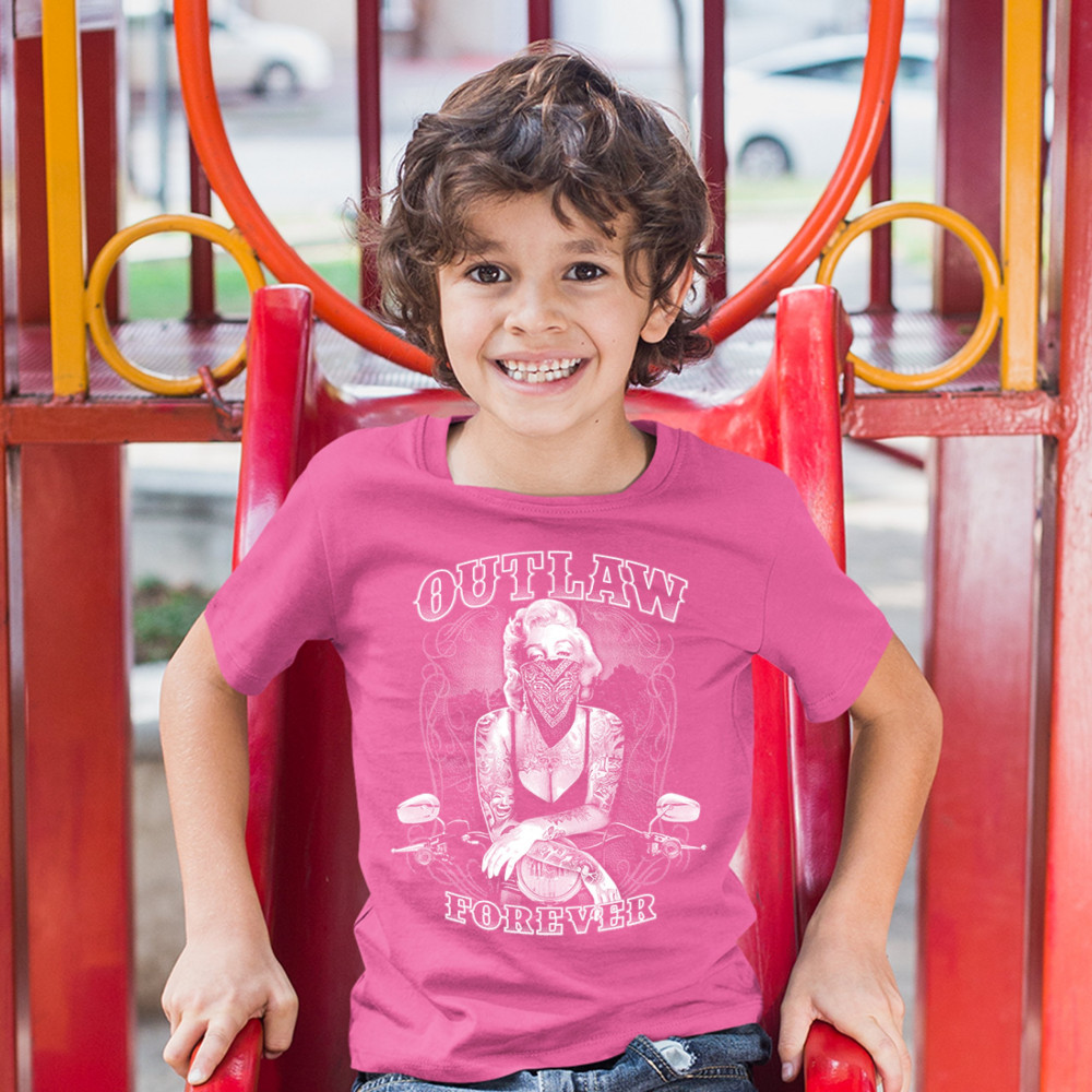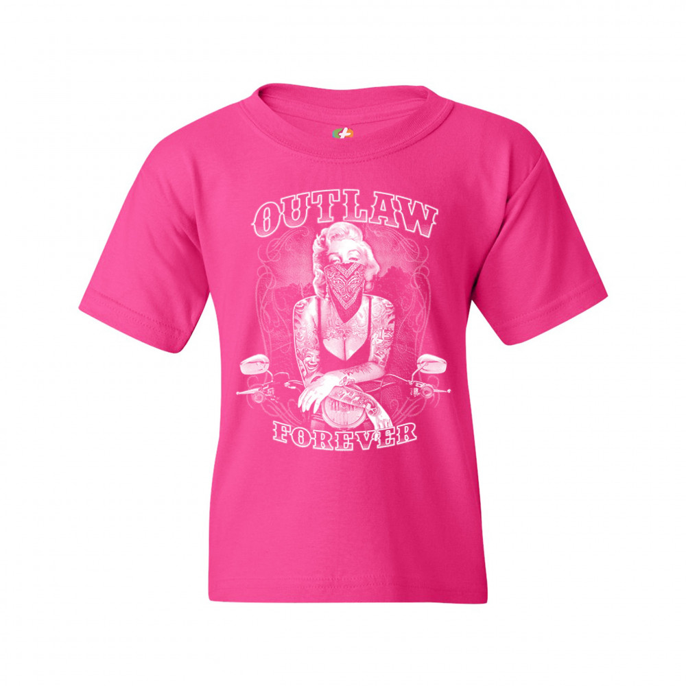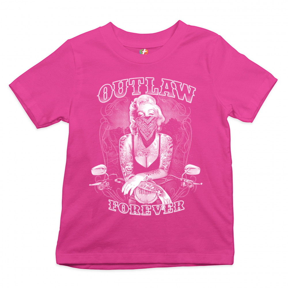 MARILYN MONROE OUTLAW FOREVER youth t-shirt biker live to ride motorcycle kids pink