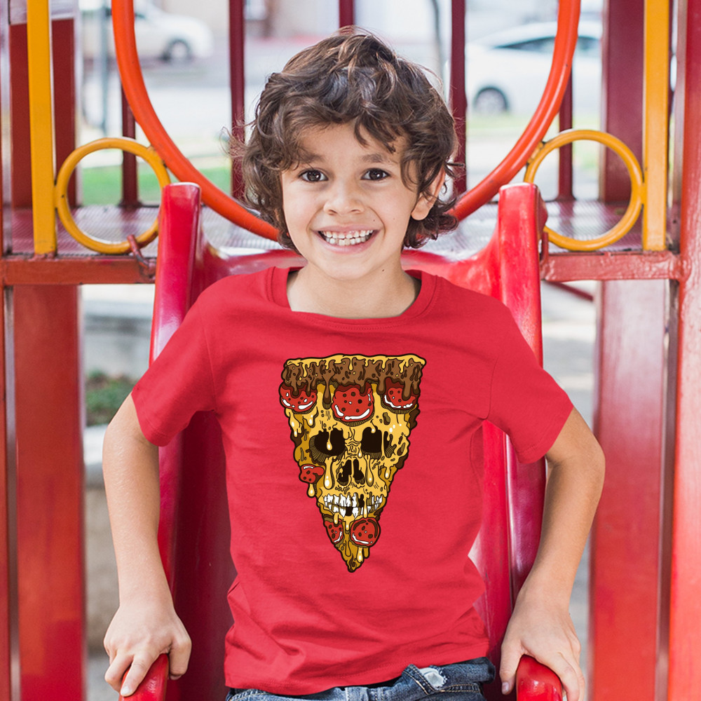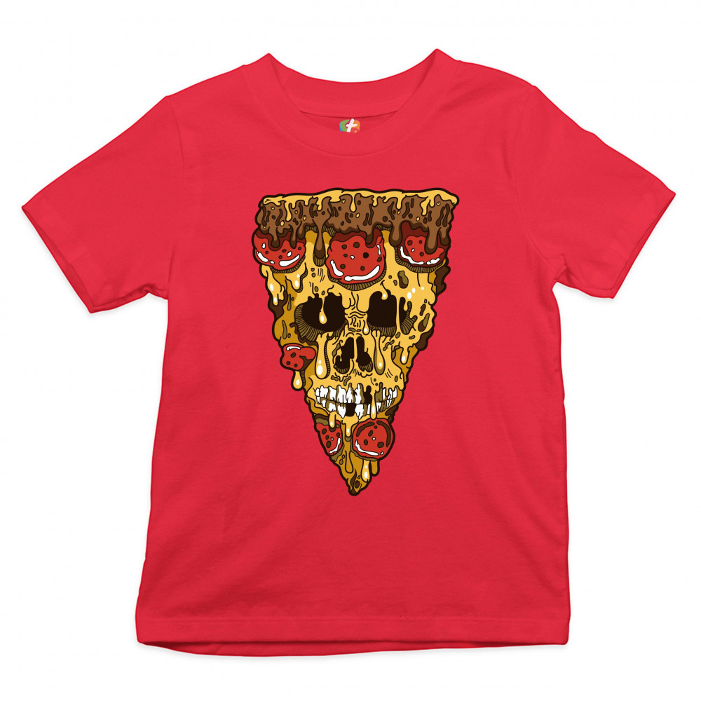 MELTING PIZZA ZOMBIE FACE youth t-shirt horror halloween scary undead kids red