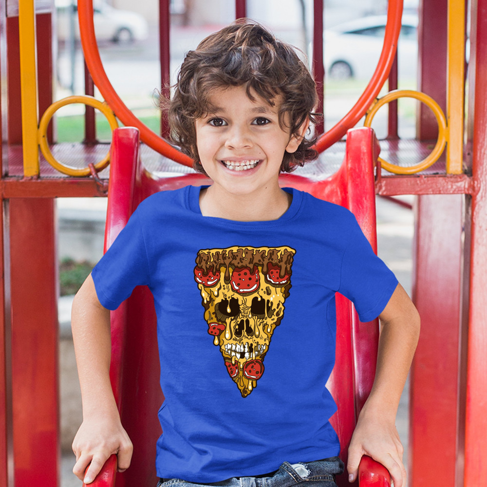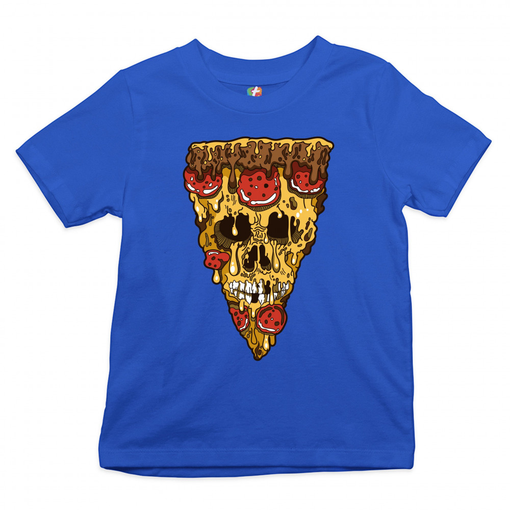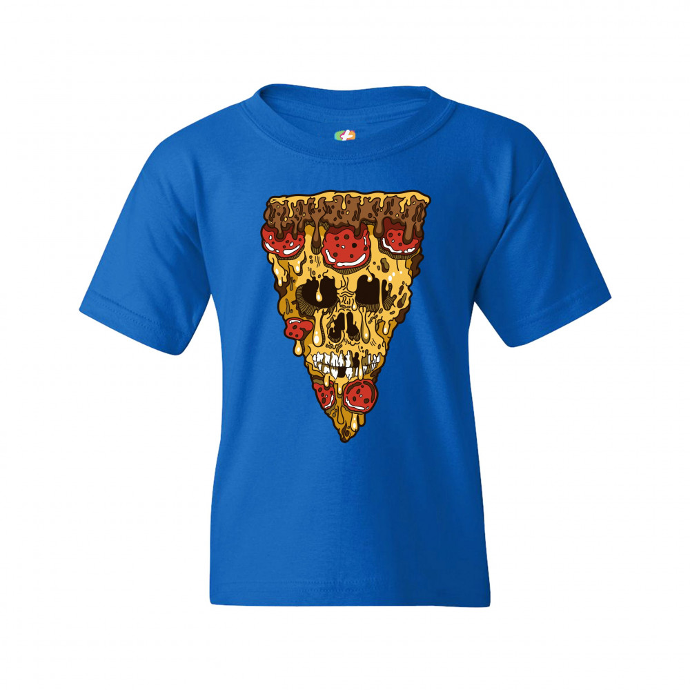 MELTING PIZZA ZOMBIE FACE youth t-shirt horror halloween scary undead kids royal blue