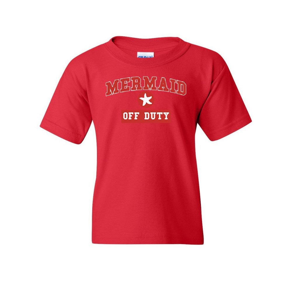MERMAID OFF DUTY youth t-shirt funny cute holiday vacation ocean beach kids tee red