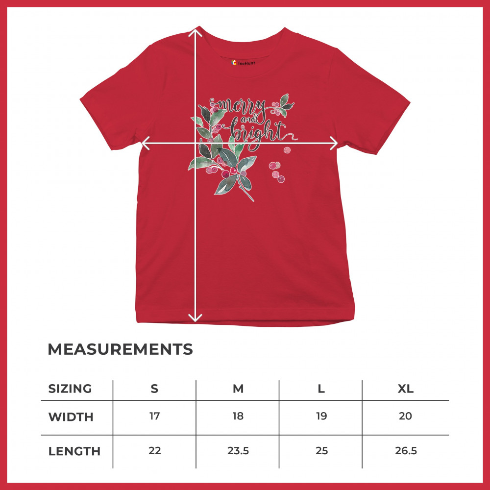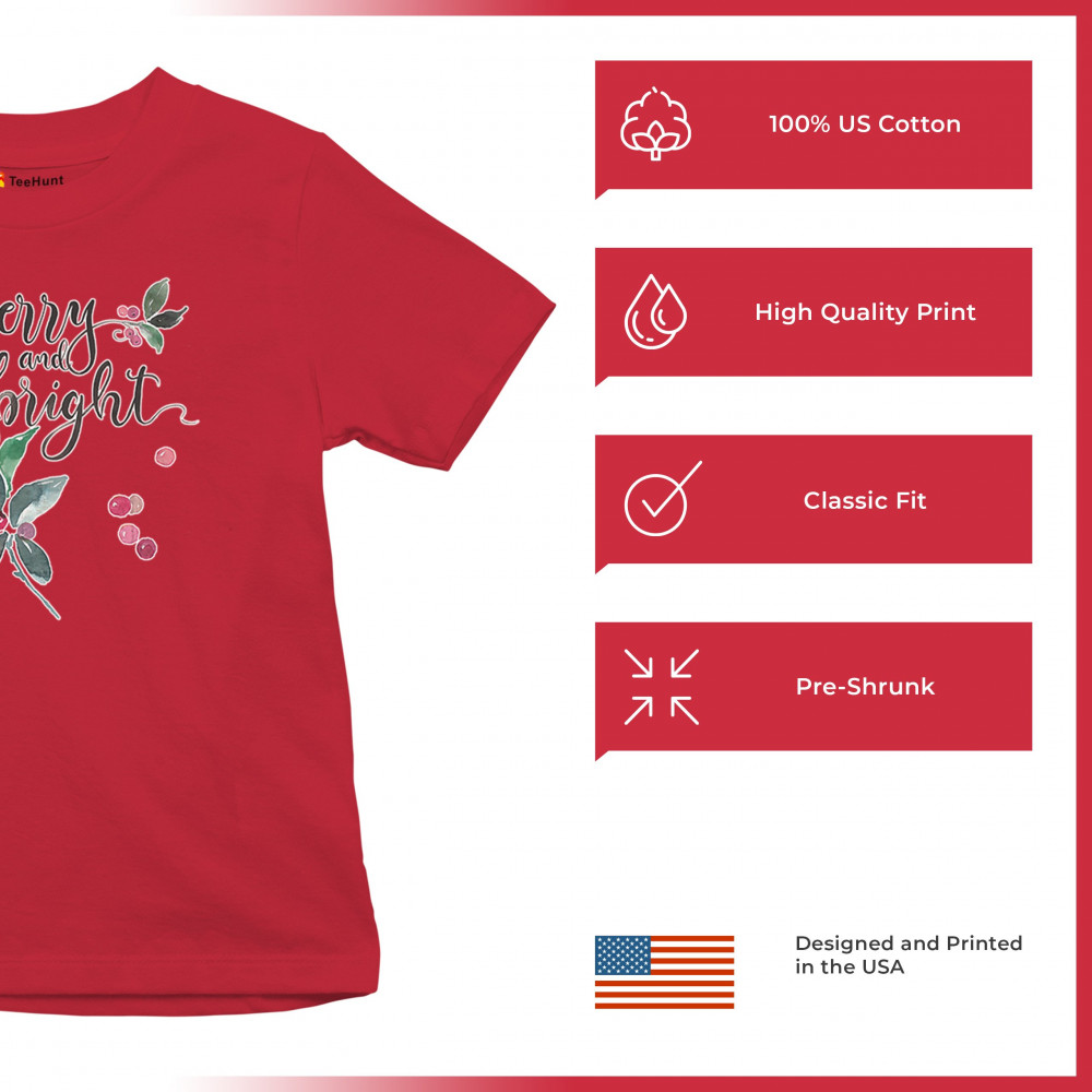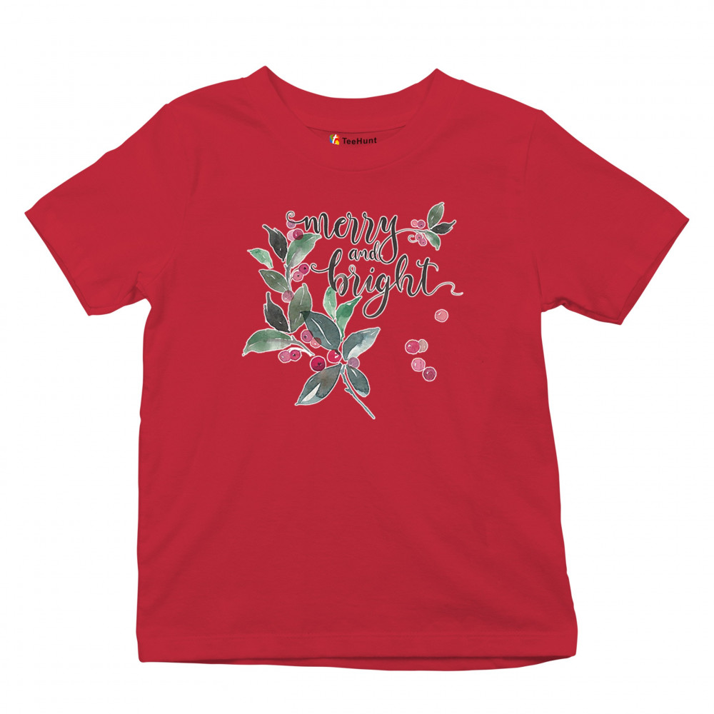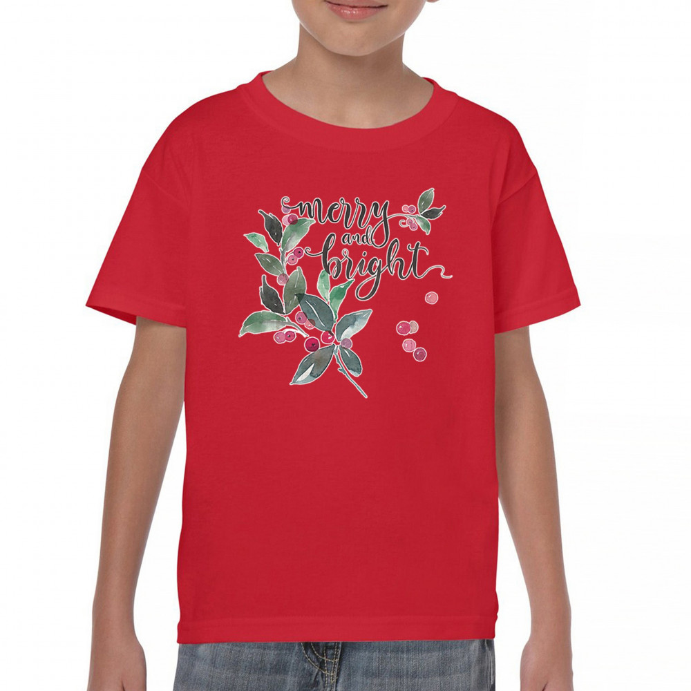 MERRY AND BRIGHT CUTE CHRISTMAS youth t-shirt jolly santa clause xmas kids red