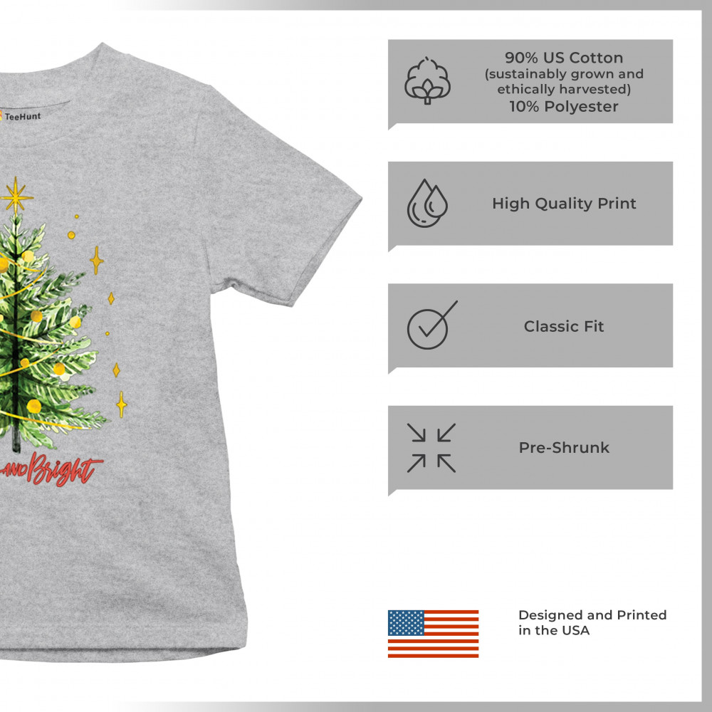 Festive “Merry and Bright†shirt featuring a joyful Christmas tree. Perfect for holiday gatherings, office parties, or Secret Santa gifts.