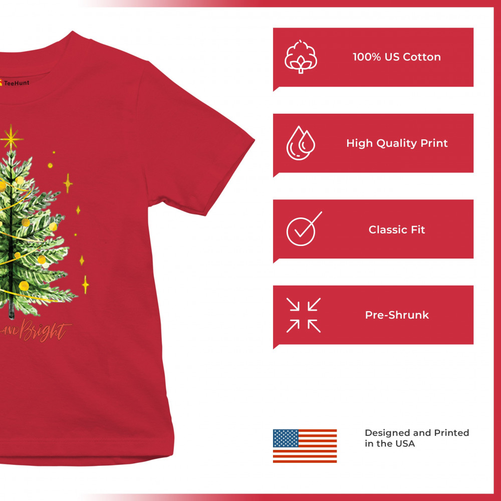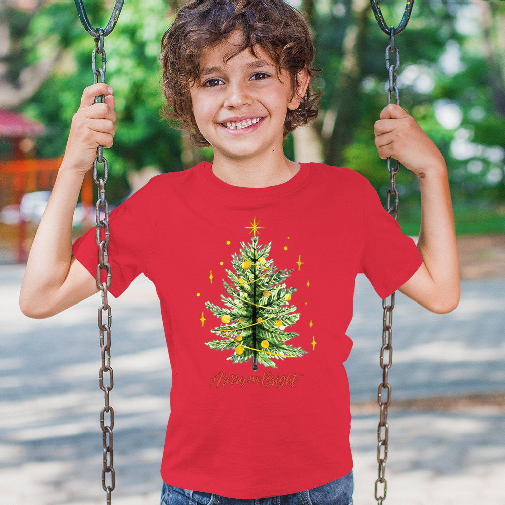 Festive “Merry and Bright†shirt featuring a joyful Christmas tree. Perfect for holiday gatherings, office parties, or Secret Santa gifts.