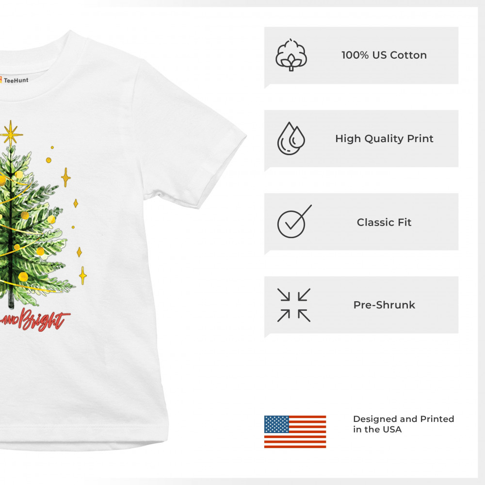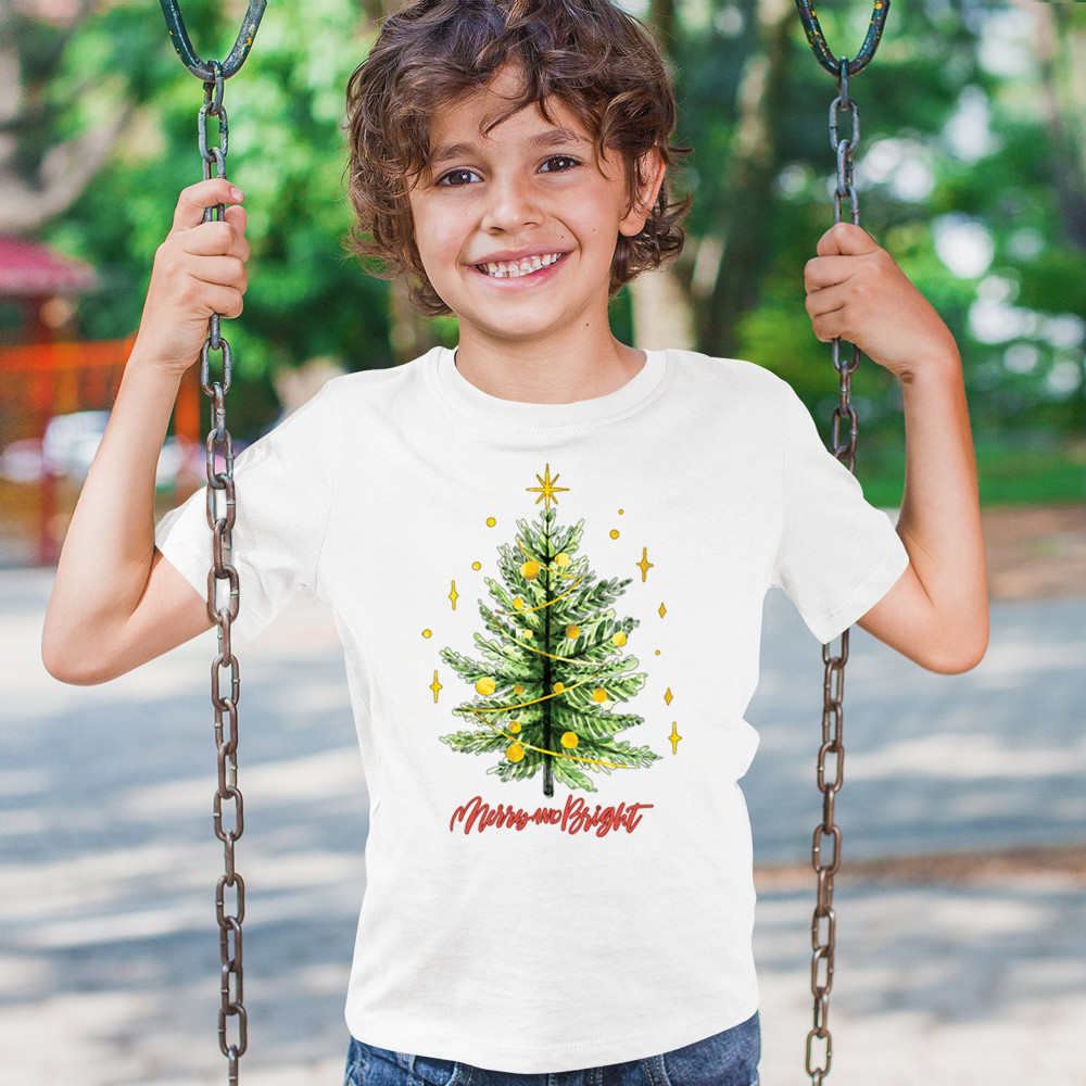 Festive “Merry and Bright†shirt featuring a joyful Christmas tree. Perfect for holiday gatherings, office parties, or Secret Santa gifts.