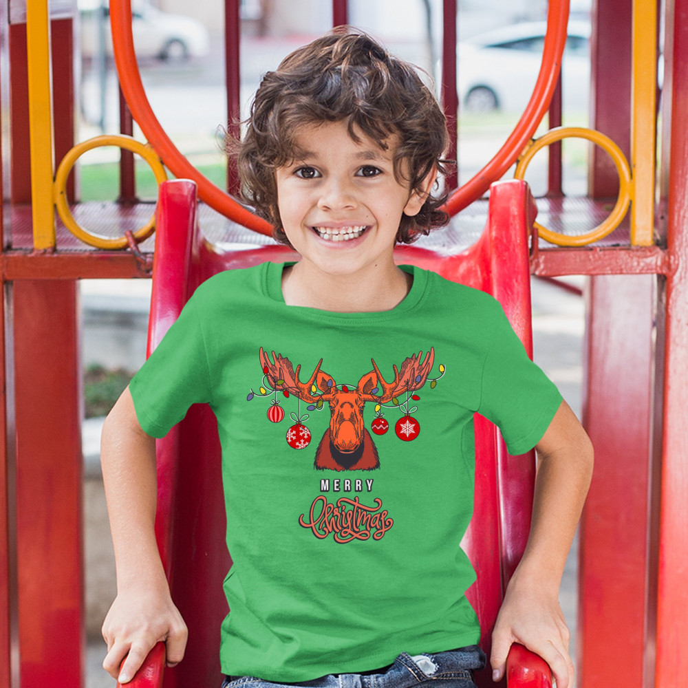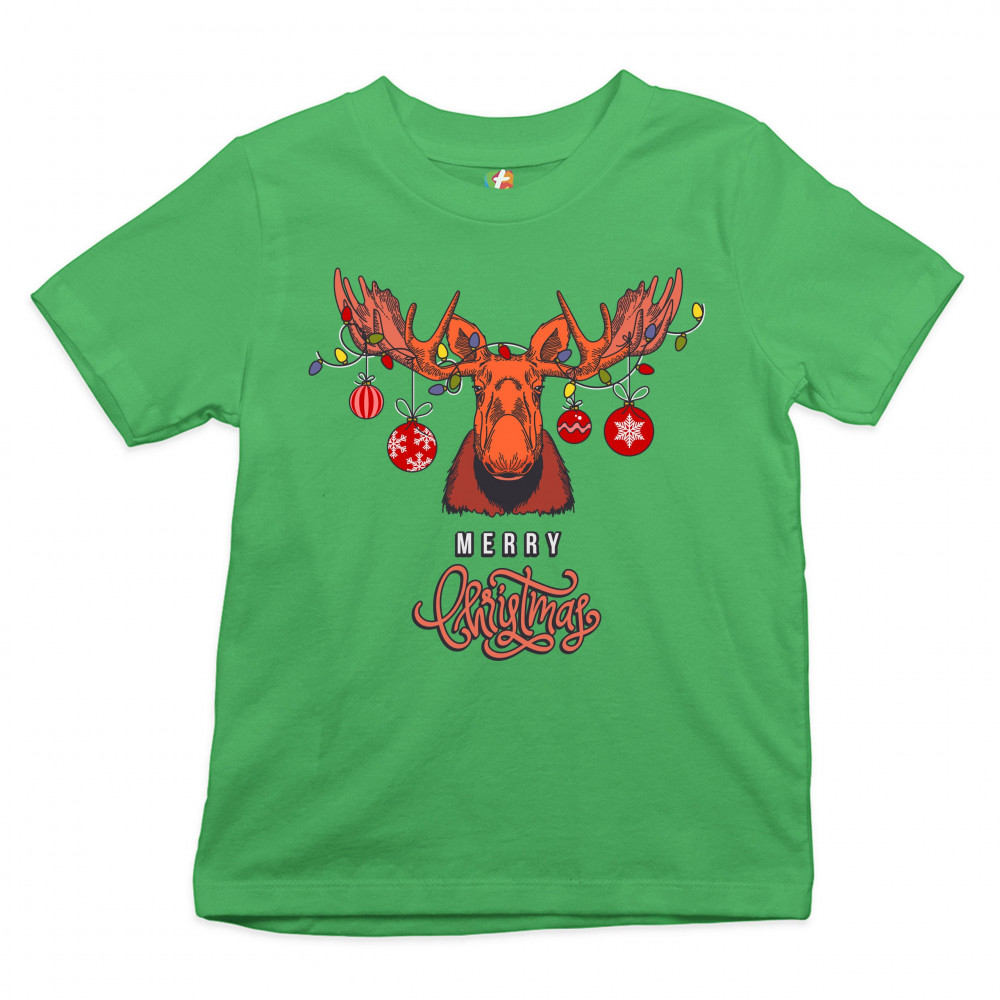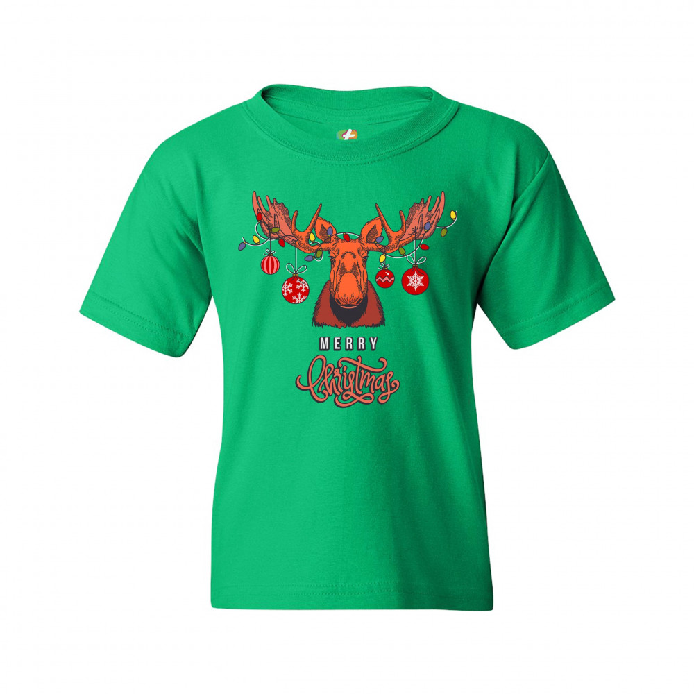 MERRY CHRISTMAS BUCK youth t-shirt reindeer rudolph holiday spirit kids green