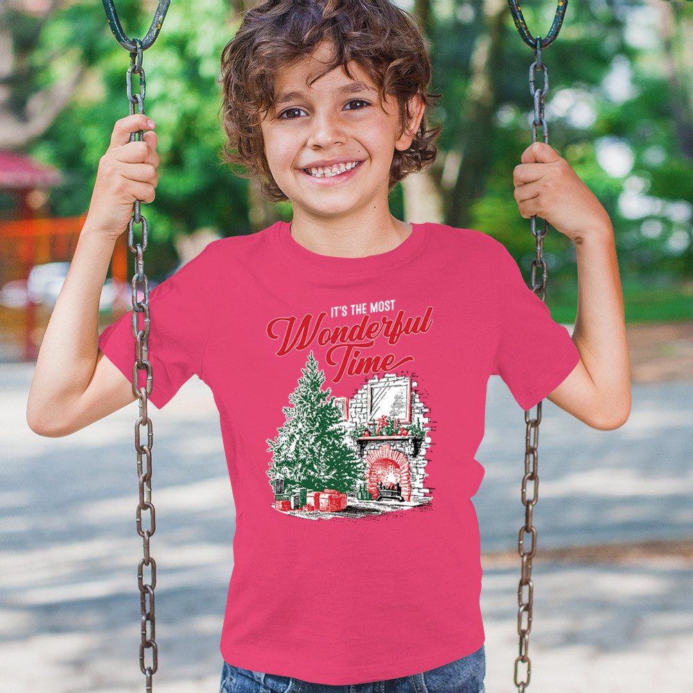 Make your holidays brighter with this “Most Wonderful Time†Christmas design, featuring a glowing fireplace, festive living room, and decorated Christmas tree. This cozy Christmas shirt combines holiday home decor style with classic Merry Xmas charm. Perfect for those who love Santa Claus, Rudolph, reindeer, Let It Snow vibes, and cheerful holiday fashion.