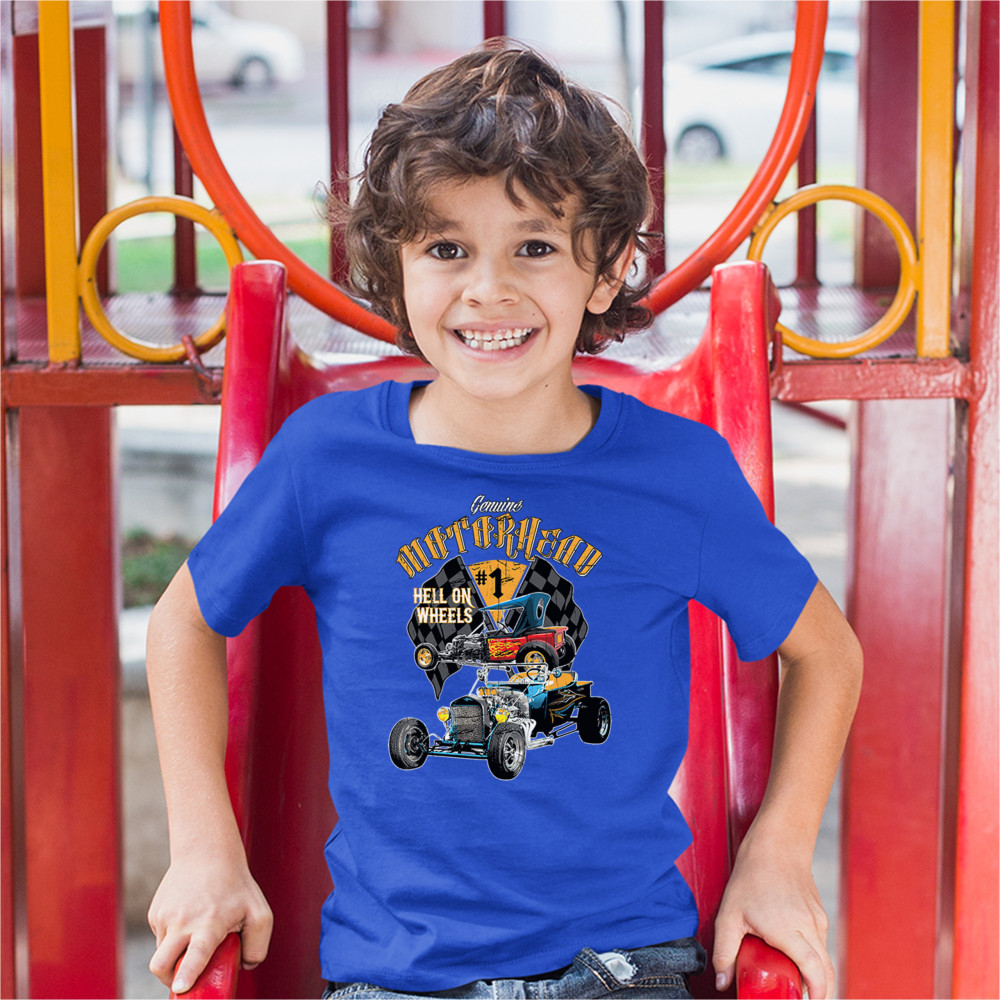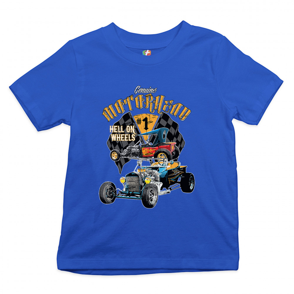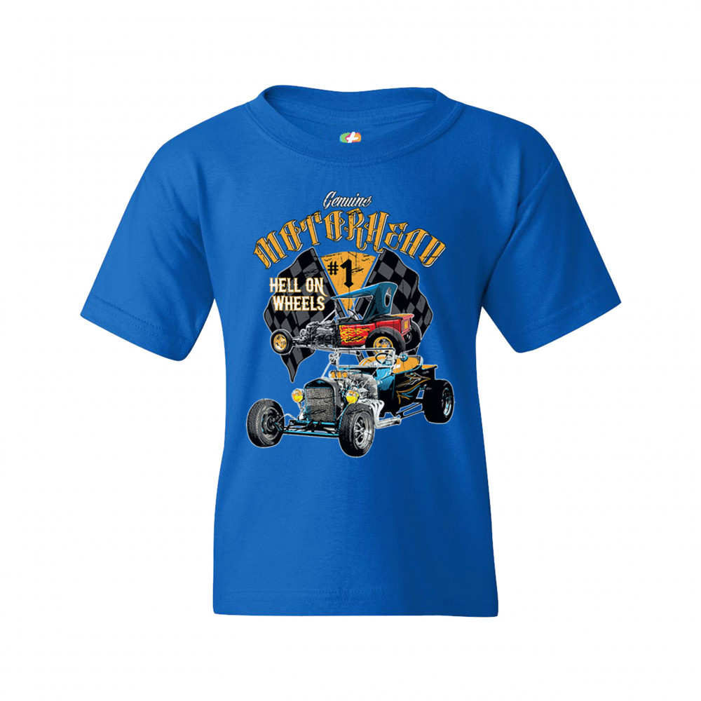 MOTORHEAD HOT ROD youth t-shirt hell on wheels route 66 drag racing kids royal blue