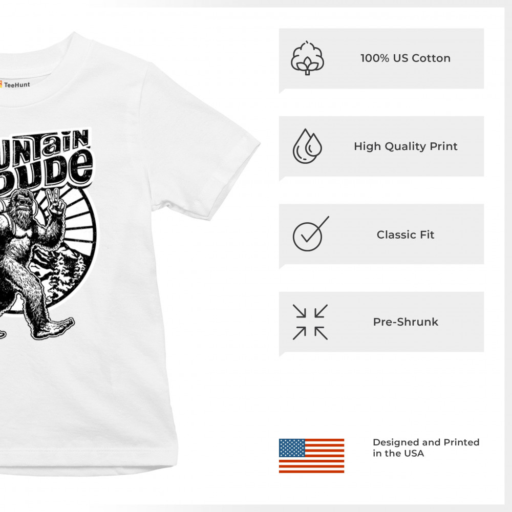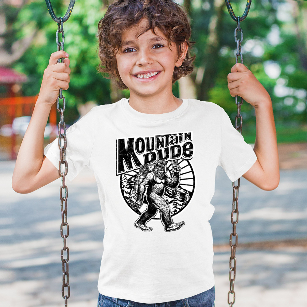 Celebrate outdoor adventures with the "Mountain Dude" design, featuring Sasquatch and mountain scenery. Perfect for hikers, campers, and Bigfoot fans.