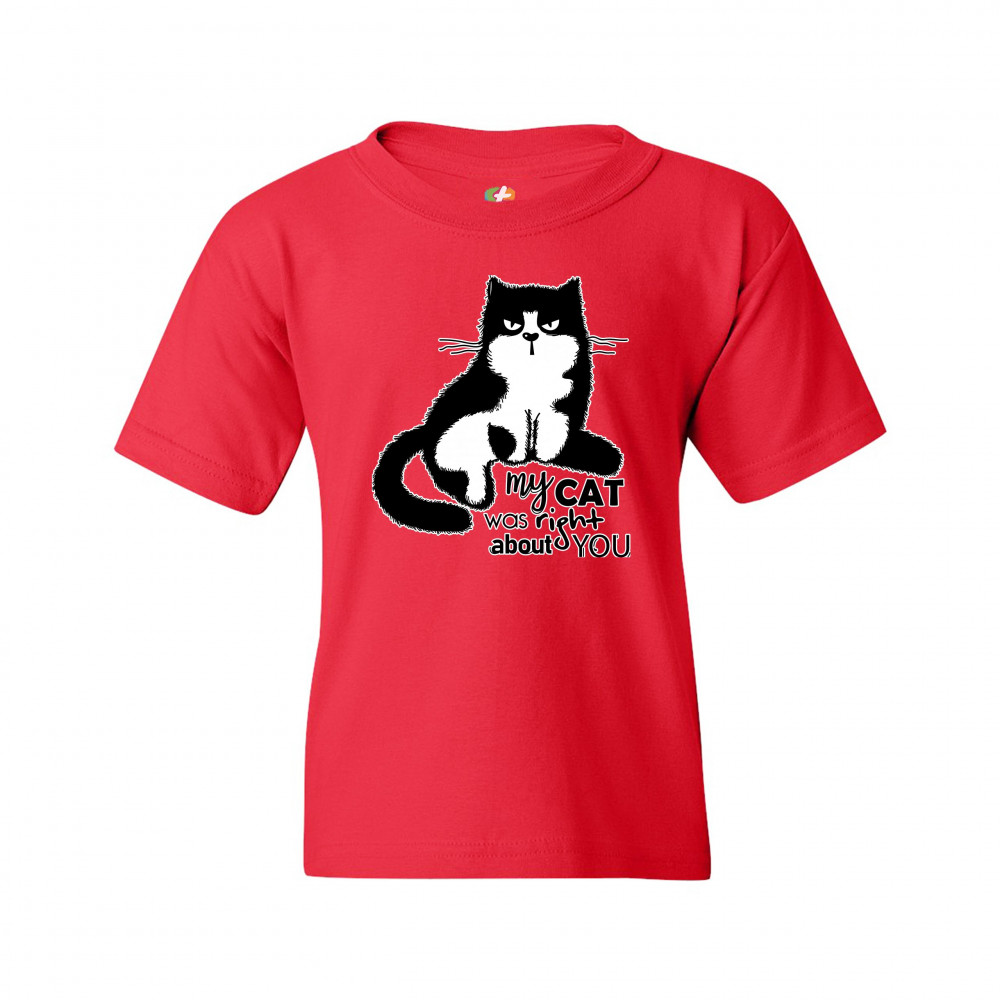MY CAT WAS RIGHT ABOUT YOU youth t-shirt cat lover funny kitty kitten kids red