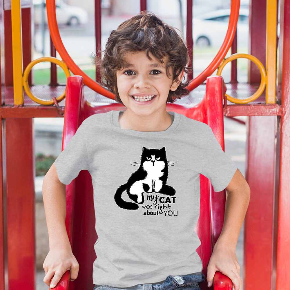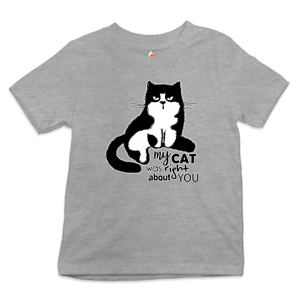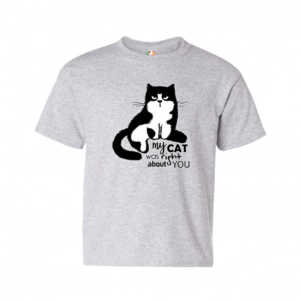 MY CAT WAS RIGHT ABOUT YOU youth t-shirt cat lover funny kitty kitten kids gray