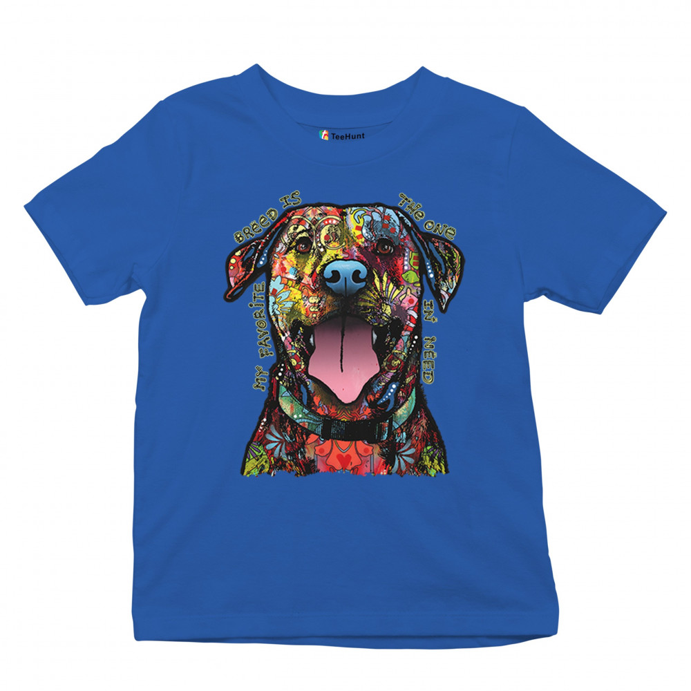 MY FAVORITE BREED IS THE ONE IN NEED youth t-shirt dean russo neon dog kids royal blue