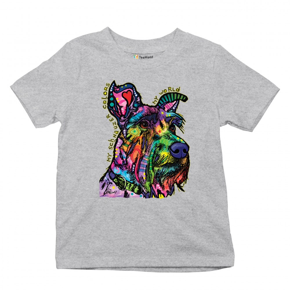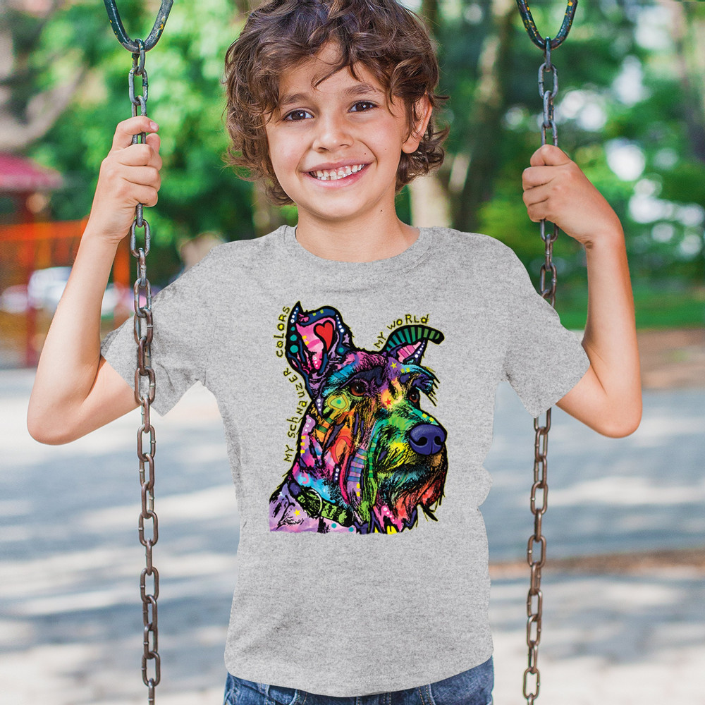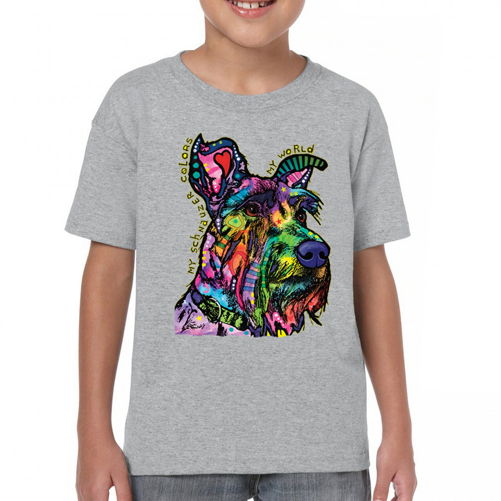 MY SCHNAUZER COLORS MY WORLD youth t-shirt dean russo pet dog mom kids gray