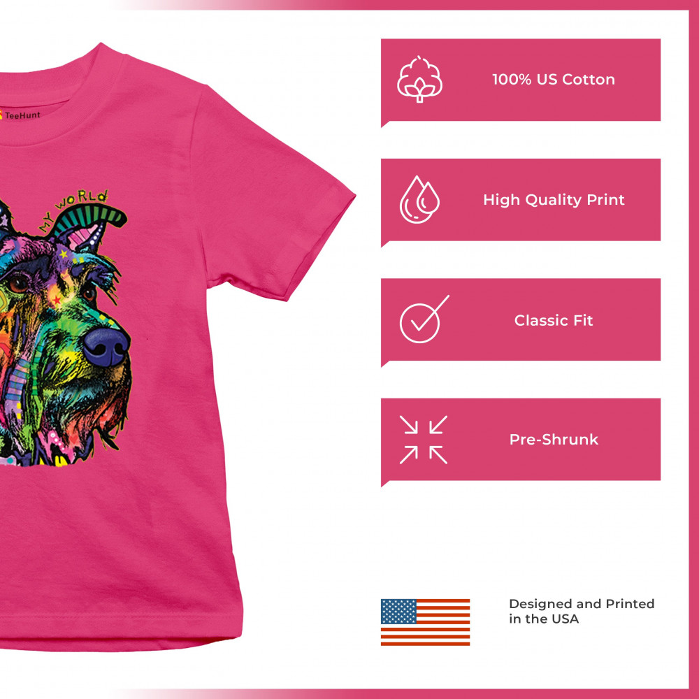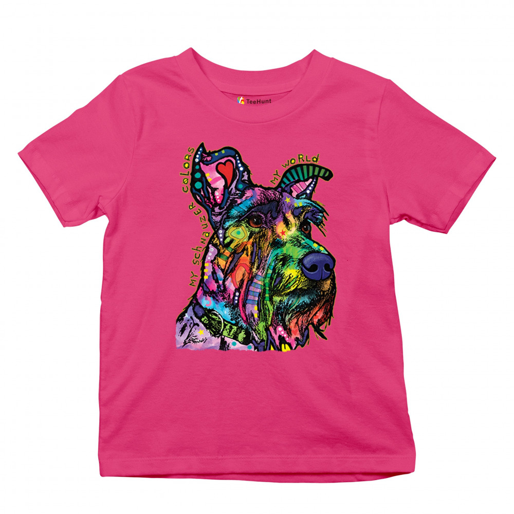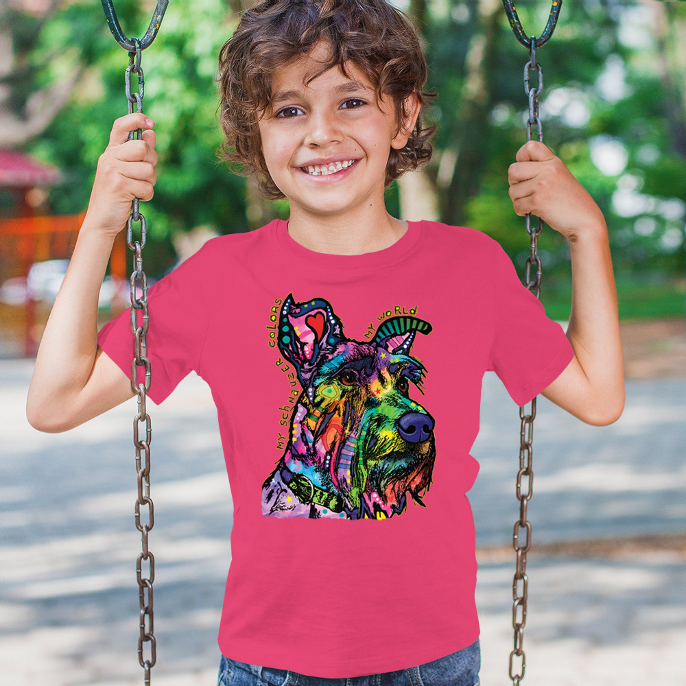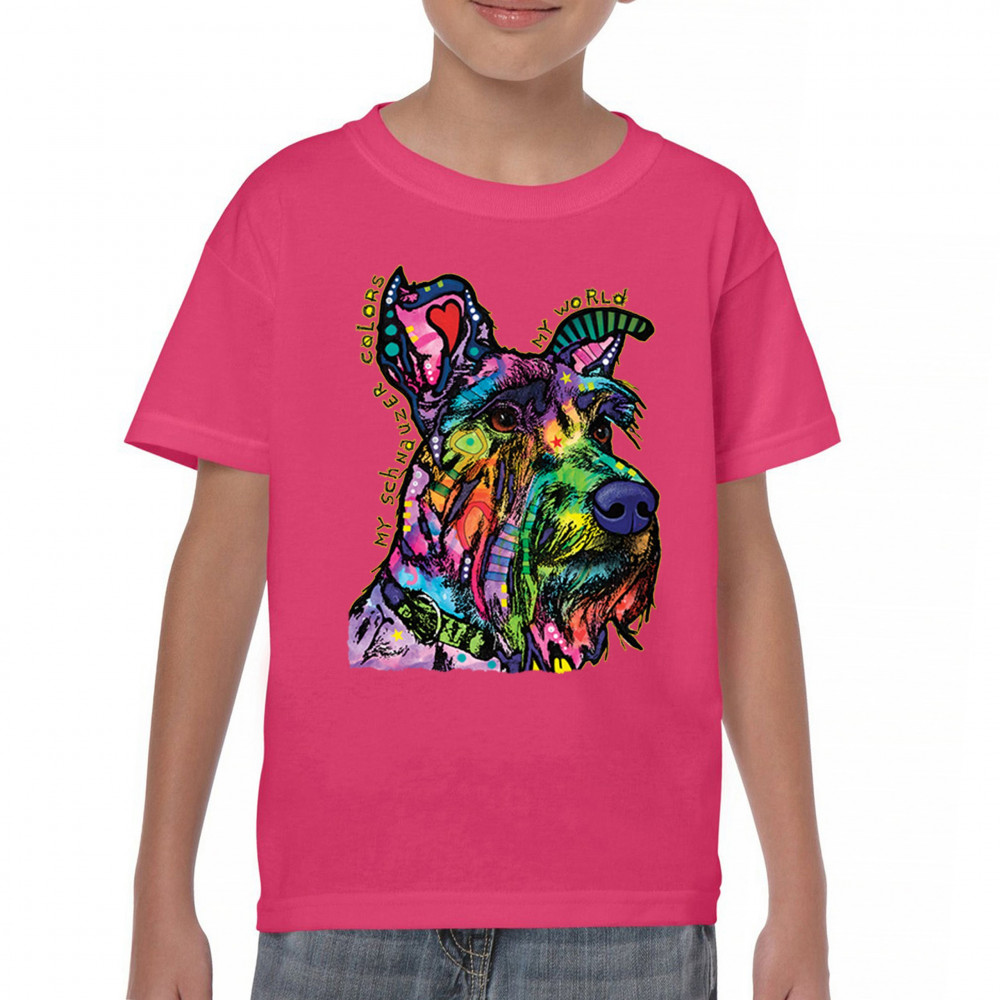 MY SCHNAUZER COLORS MY WORLD youth t-shirt dean russo pet dog mom kids pink