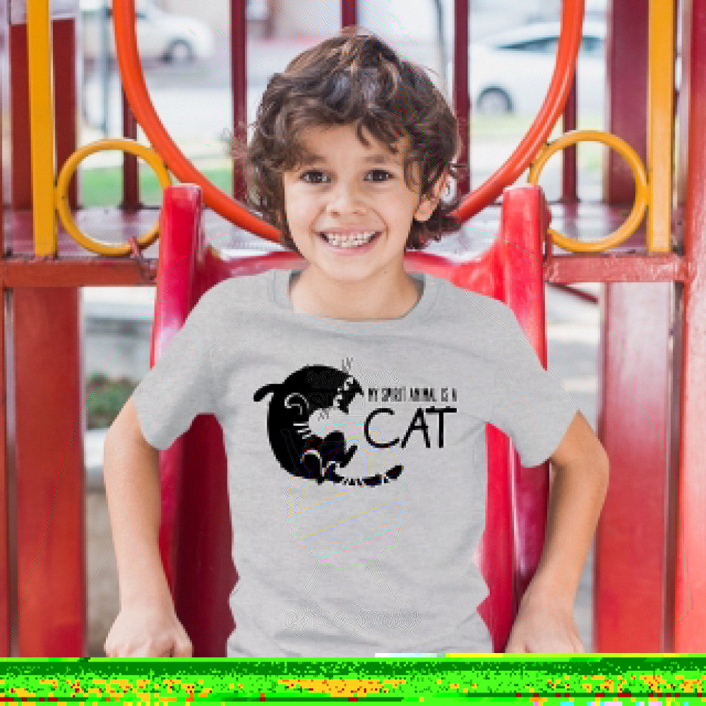 MY SPIRIT ANIMAL IS A CAT youth t-shirt cute kitty funny kitten kids gray
