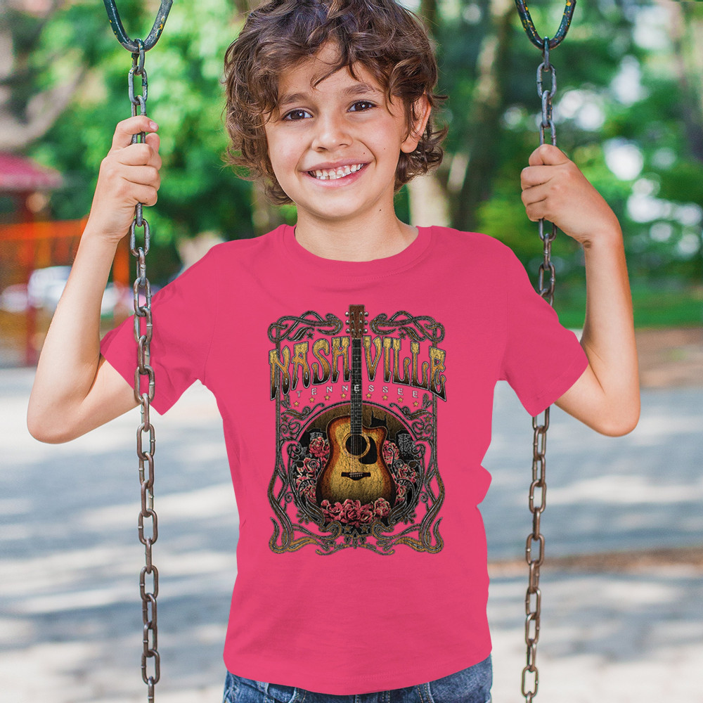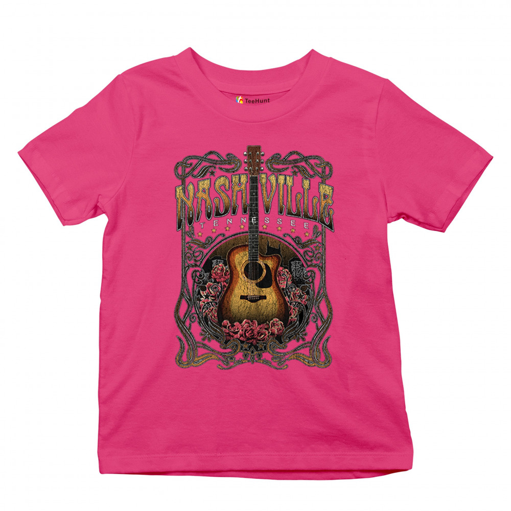 Vintage Nashville Tennessee design with rustic guitar and roses. Great for concerts, country music fans, road trips, and souvenir wear.