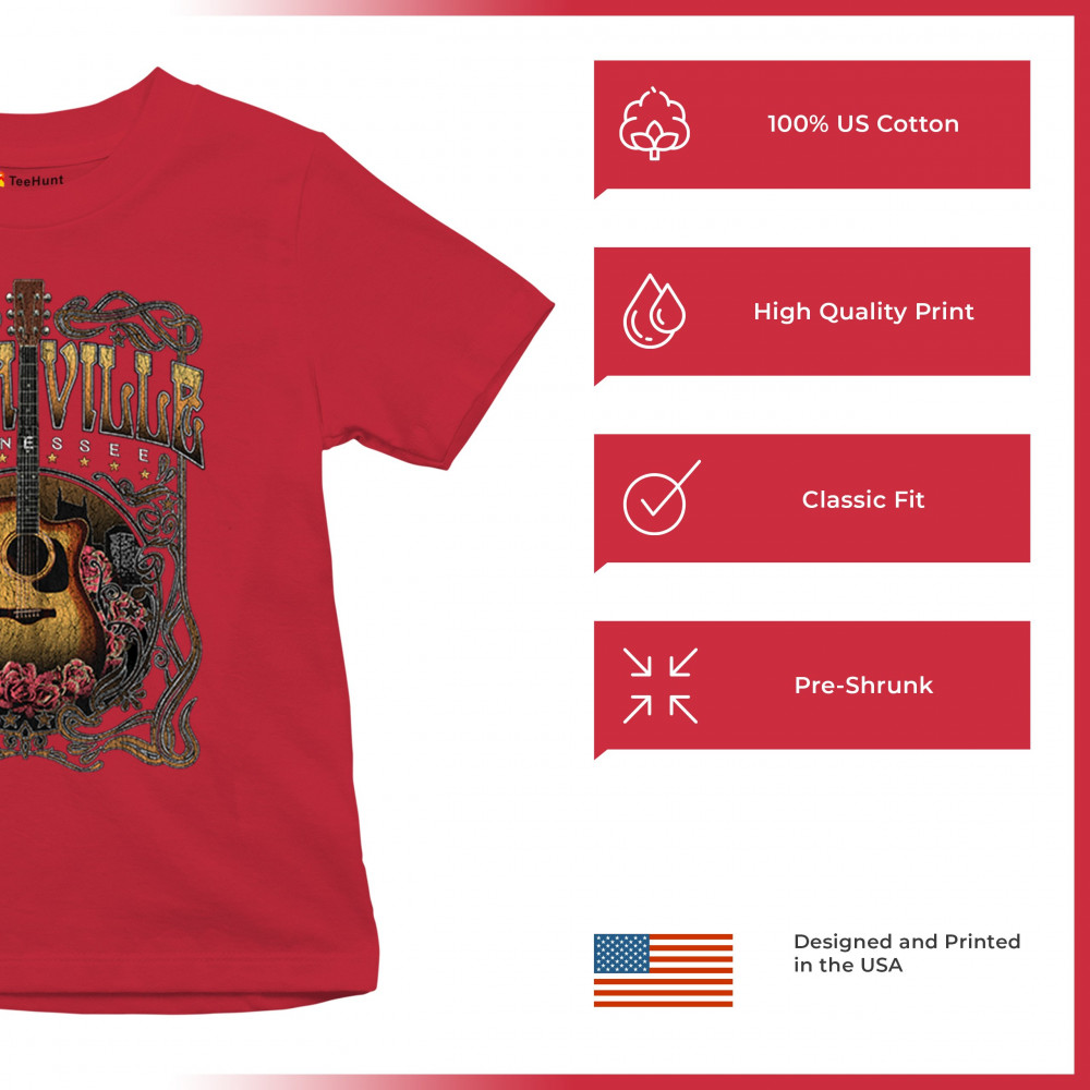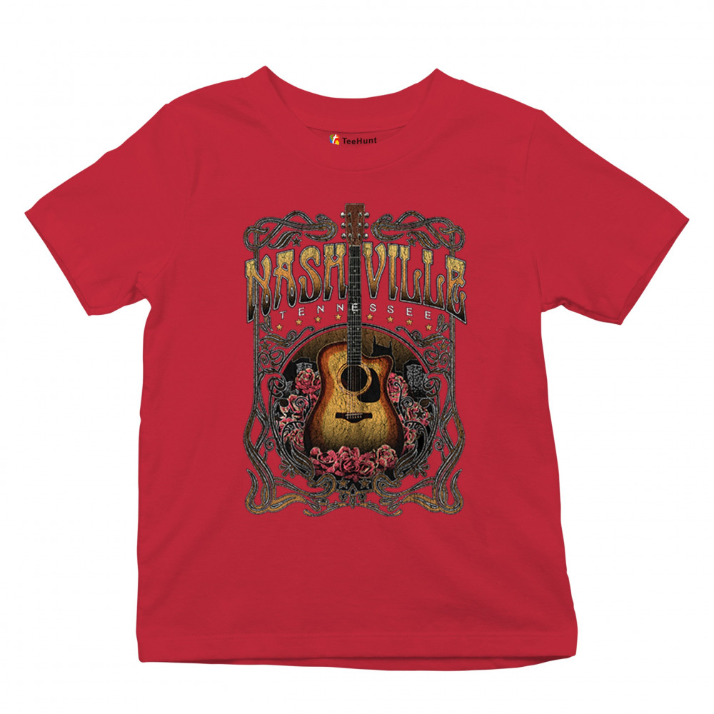 Vintage Nashville Tennessee design with rustic guitar and roses. Great for concerts, country music fans, road trips, and souvenir wear.