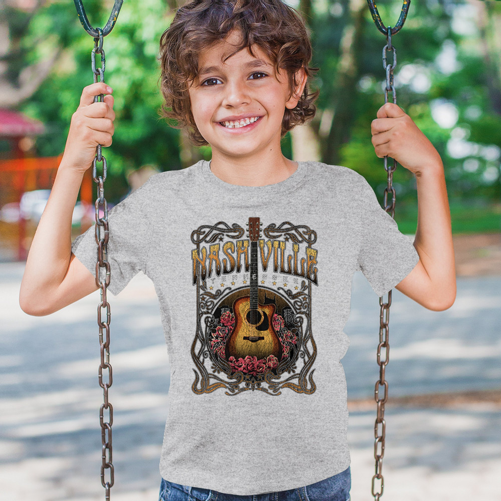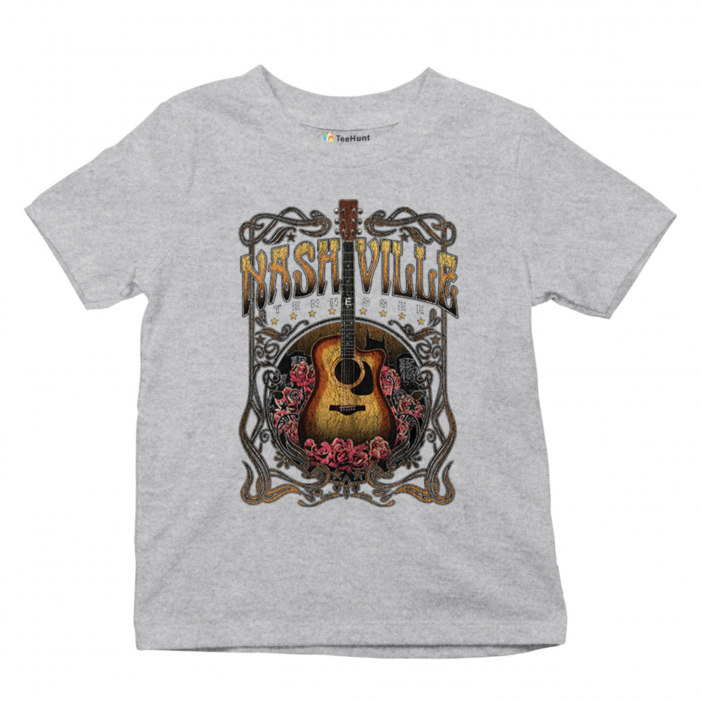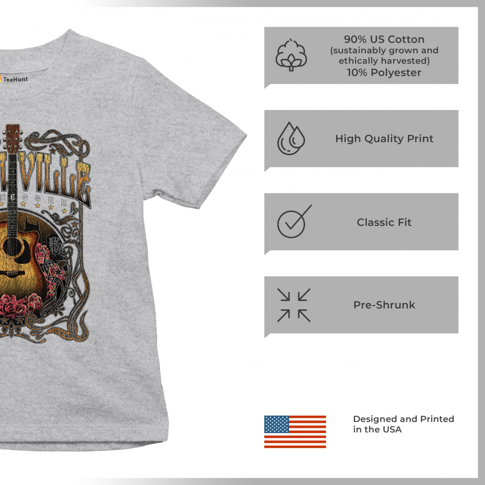 Vintage Nashville Tennessee design with rustic guitar and roses. Great for concerts, country music fans, road trips, and souvenir wear.
