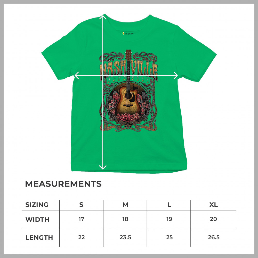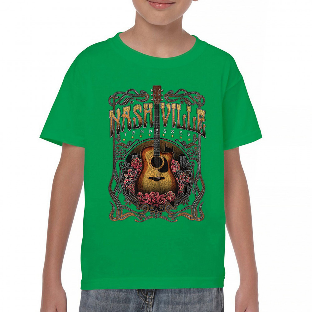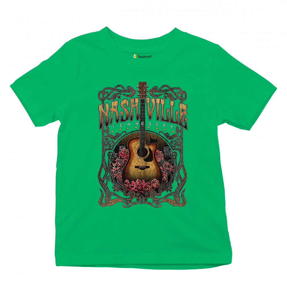 Vintage Nashville Tennessee design with rustic guitar and roses. Great for concerts, country music fans, road trips, and souvenir wear.