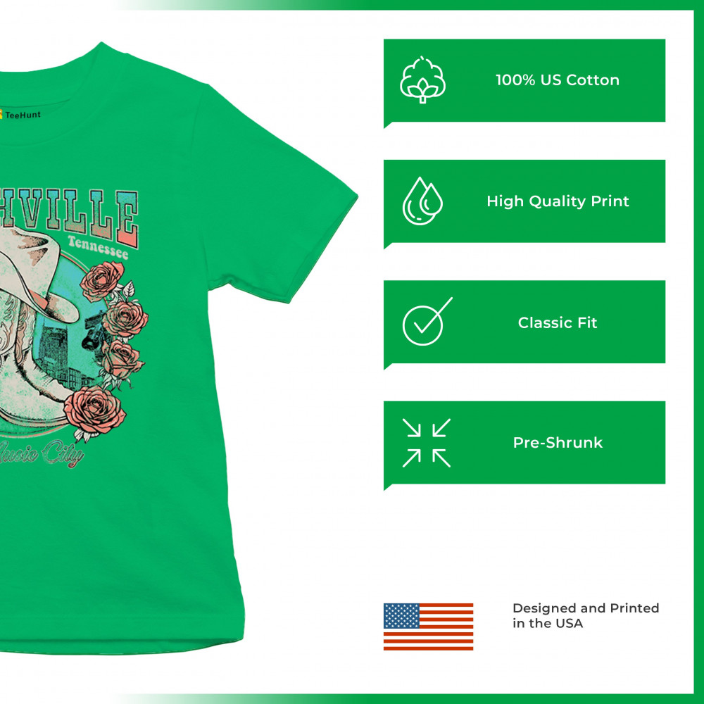 Show Nashville pride with a vintage cowgirl boots and hat design that blends country, western style, floral beauty, and southern grit.