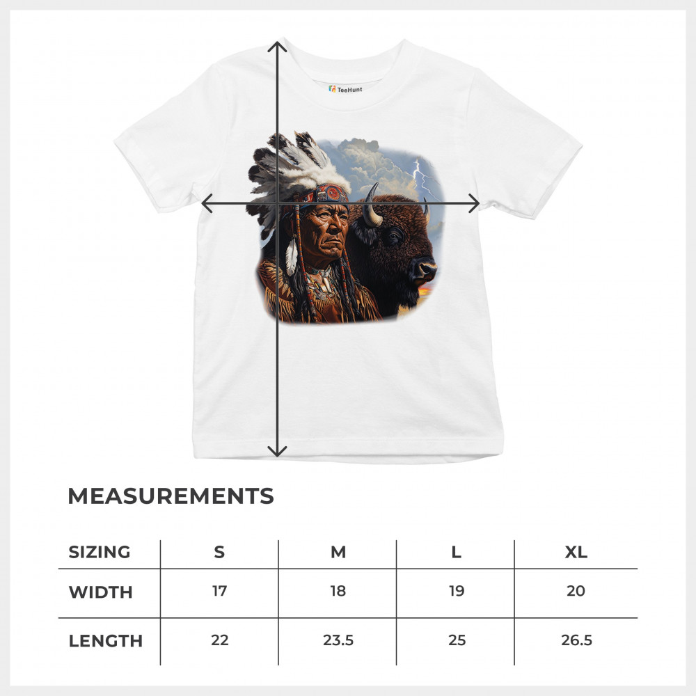 This powerful design features a Native American elder in traditional dress and feathered headdress beside a noble bison. Framed by a stormy sky and lightning, the art symbolizes tribal pride, spiritual harmony, ancestral strength, and a deep connection to nature’s raw energy.