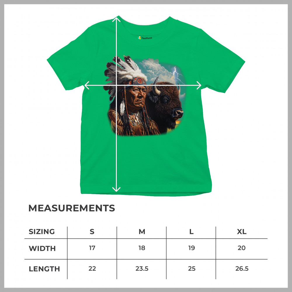 This powerful design features a Native American elder in traditional dress and feathered headdress beside a noble bison. Framed by a stormy sky and lightning, the art symbolizes tribal pride, spiritual harmony, ancestral strength, and a deep connection to nature’s raw energy.