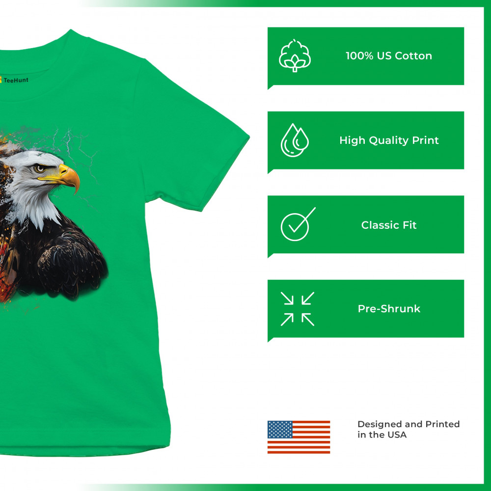 This electrifying design showcases a Native American chief with a bold bald eagle, surrounded by lightning and fire. It blends spiritual animal symbolism with cultural strength and pride. Ideal for admirers of tribal heritage, ancestral energy, and fierce visual storytelling through nature and tradition.