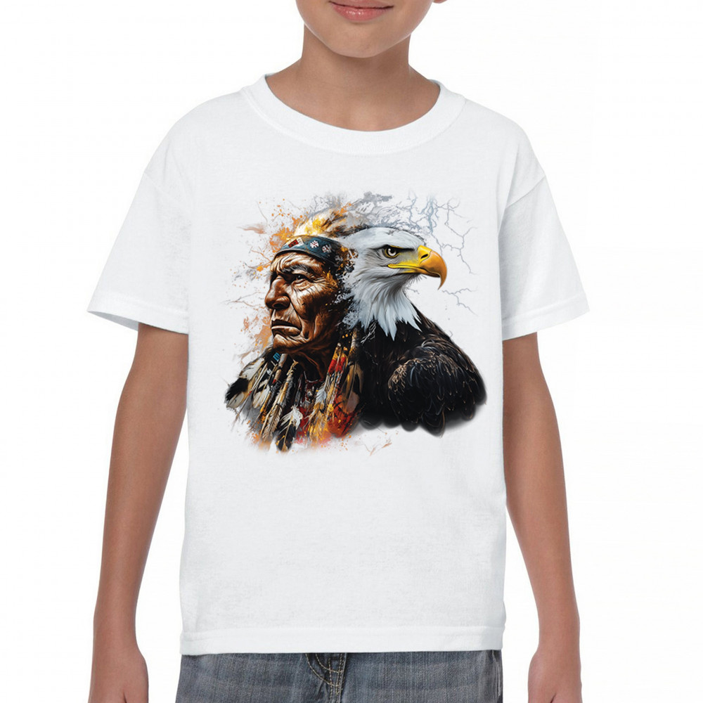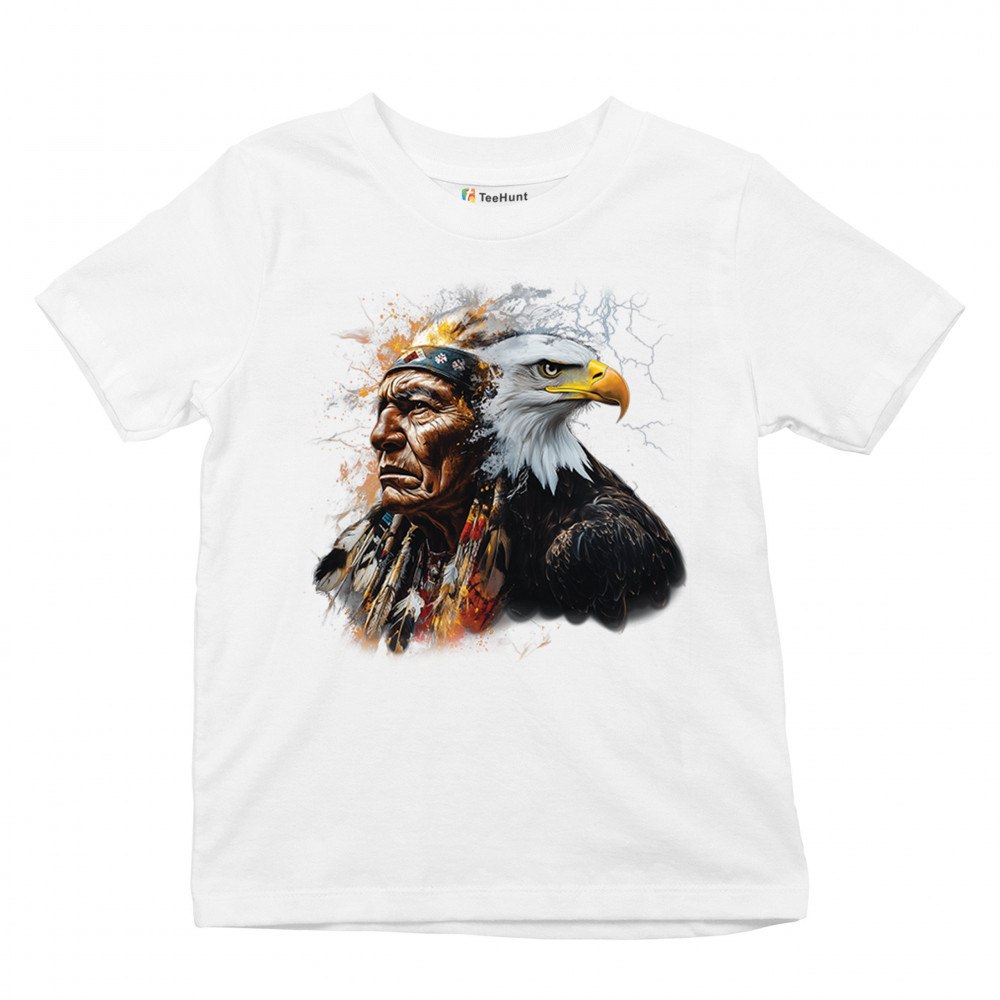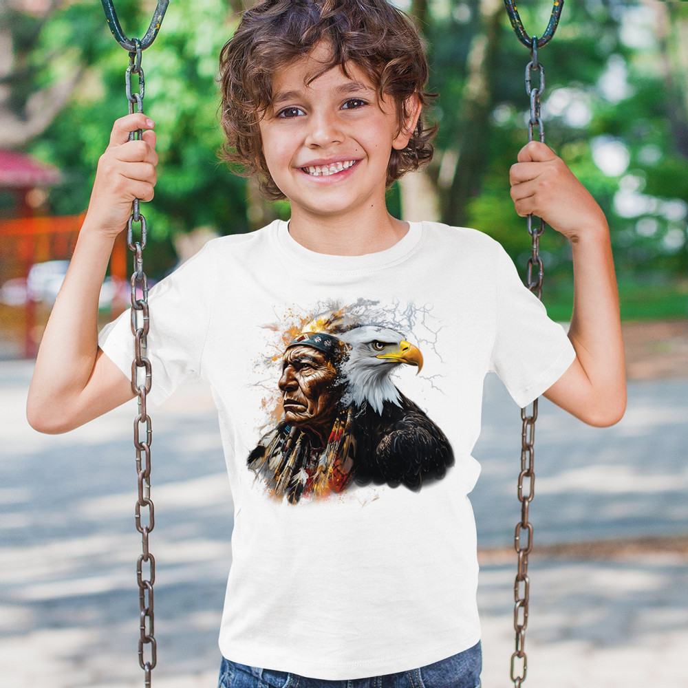 Bold tribal totem design with Native chief, eagle, lightning, and fire. A fierce blend of spirit, power, and cultural pride in one image.