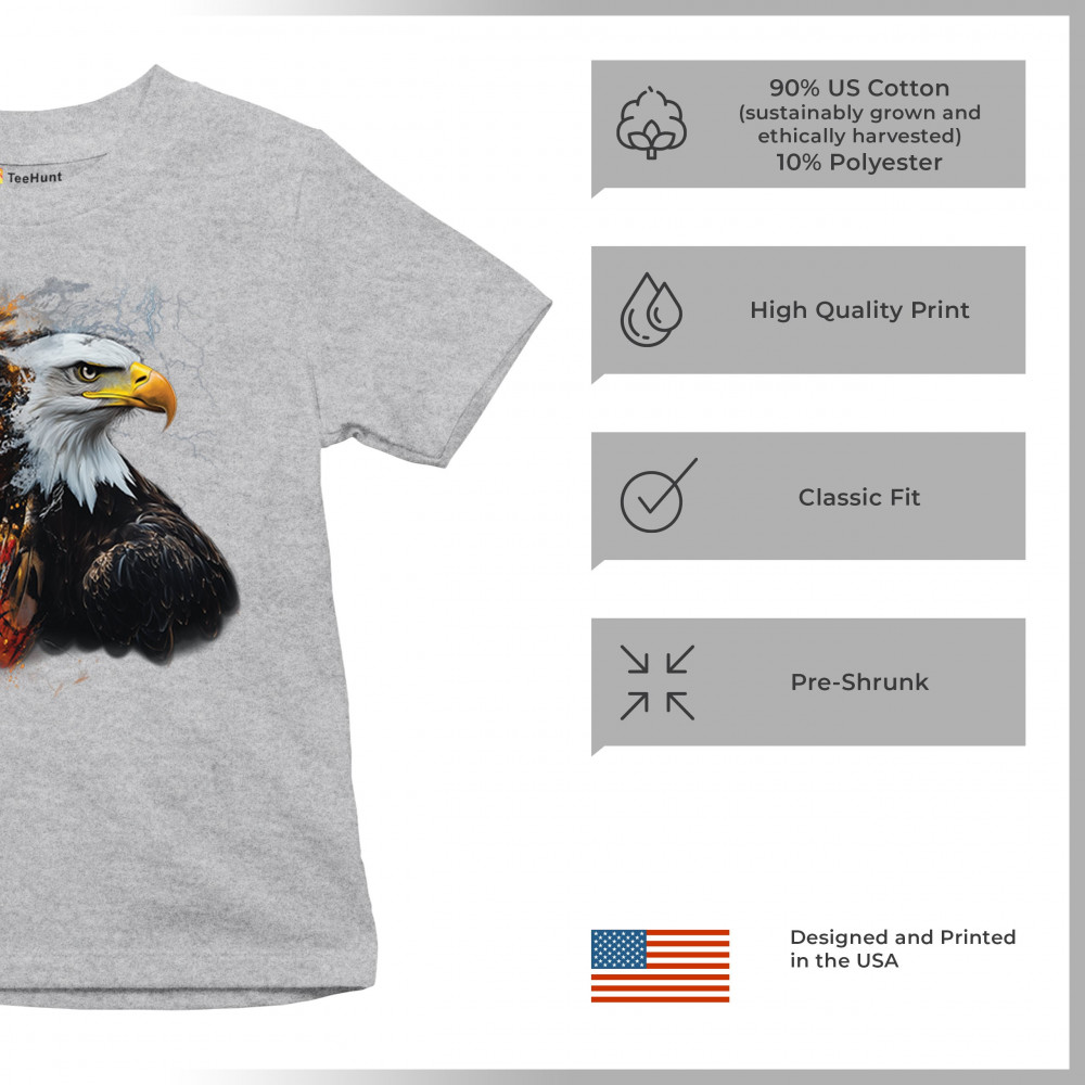 This electrifying design showcases a Native American chief with a bold bald eagle, surrounded by lightning and fire. It blends spiritual animal symbolism with cultural strength and pride. Ideal for admirers of tribal heritage, ancestral energy, and fierce visual storytelling through nature and tradition.