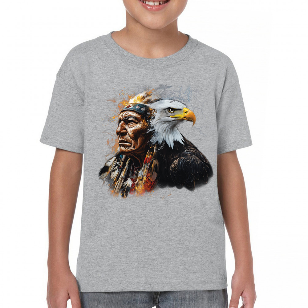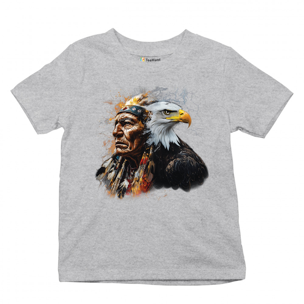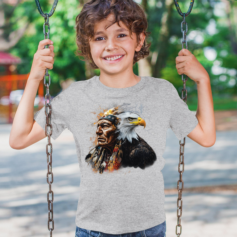 Bold tribal totem design with Native chief, eagle, lightning, and fire. A fierce blend of spirit, power, and cultural pride in one image.