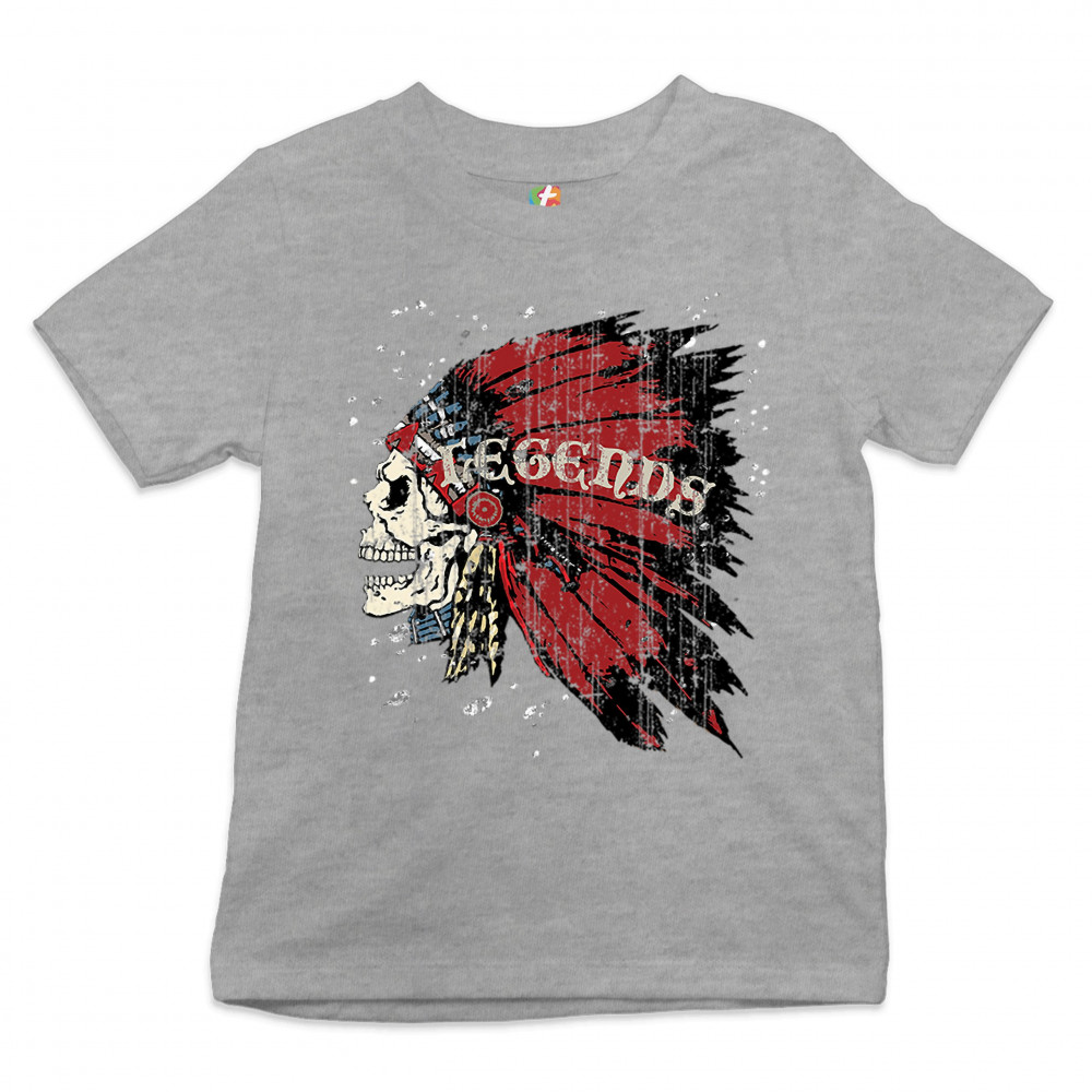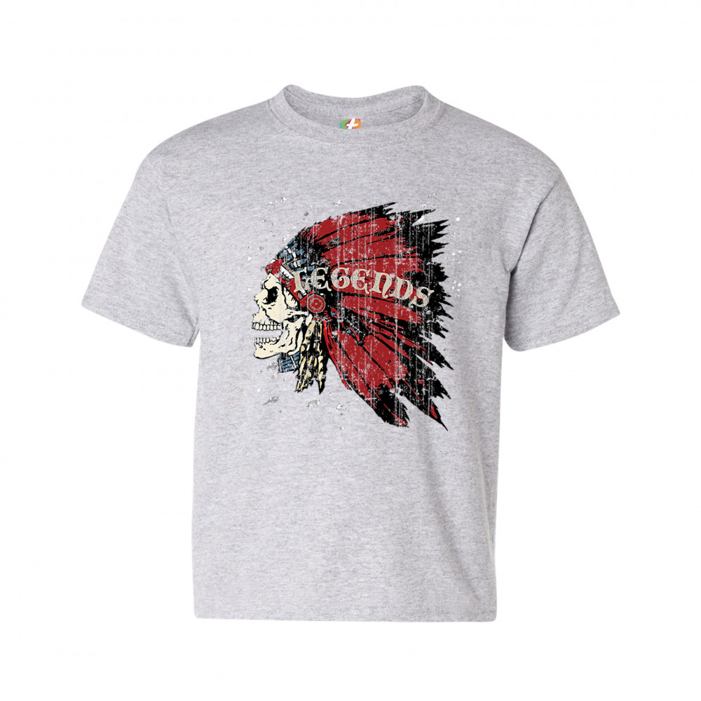 NATIVE AMERICAN LEGENDS youth t-shirt skull face war bonnet headdress kids gray
