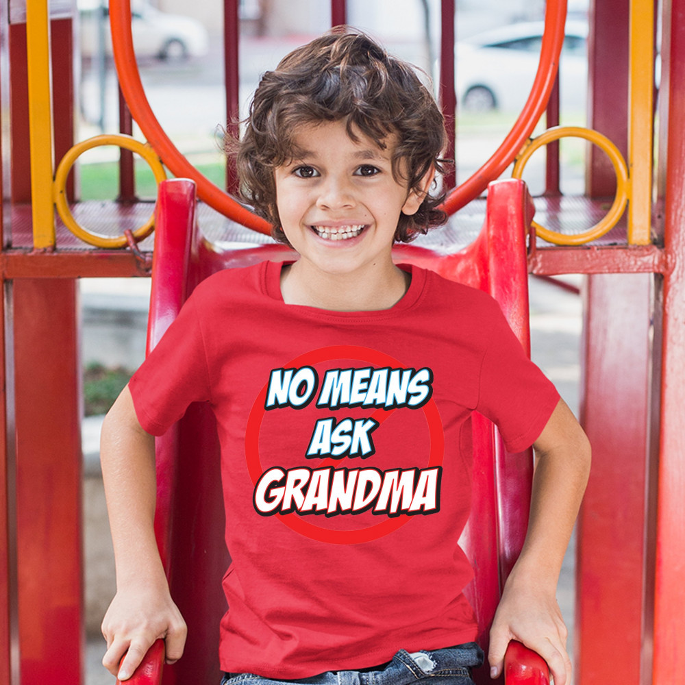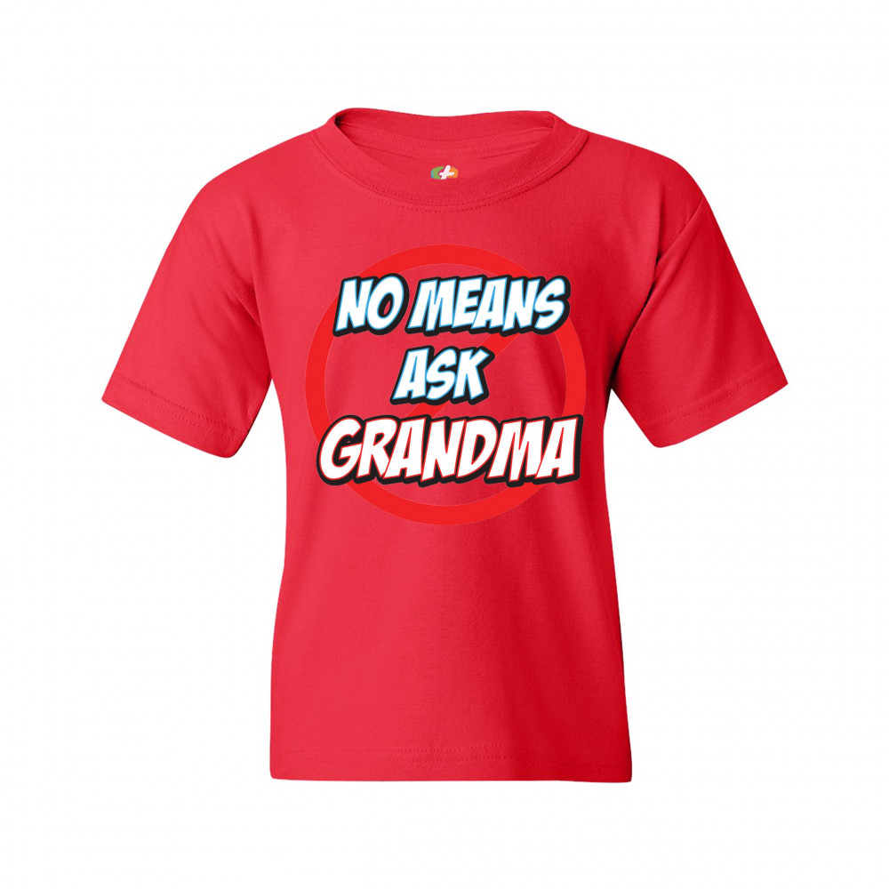 NO MEANS ASK GRANDMA youth t-shirt granny mother's day funny mimi nana kids red