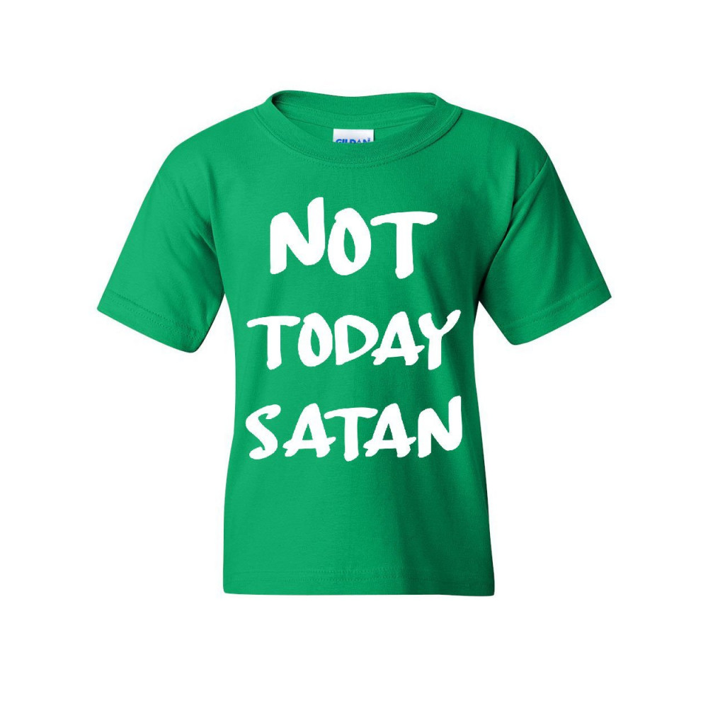 NOT TODAY SATAN youth tee religious funny jesus religion faith green