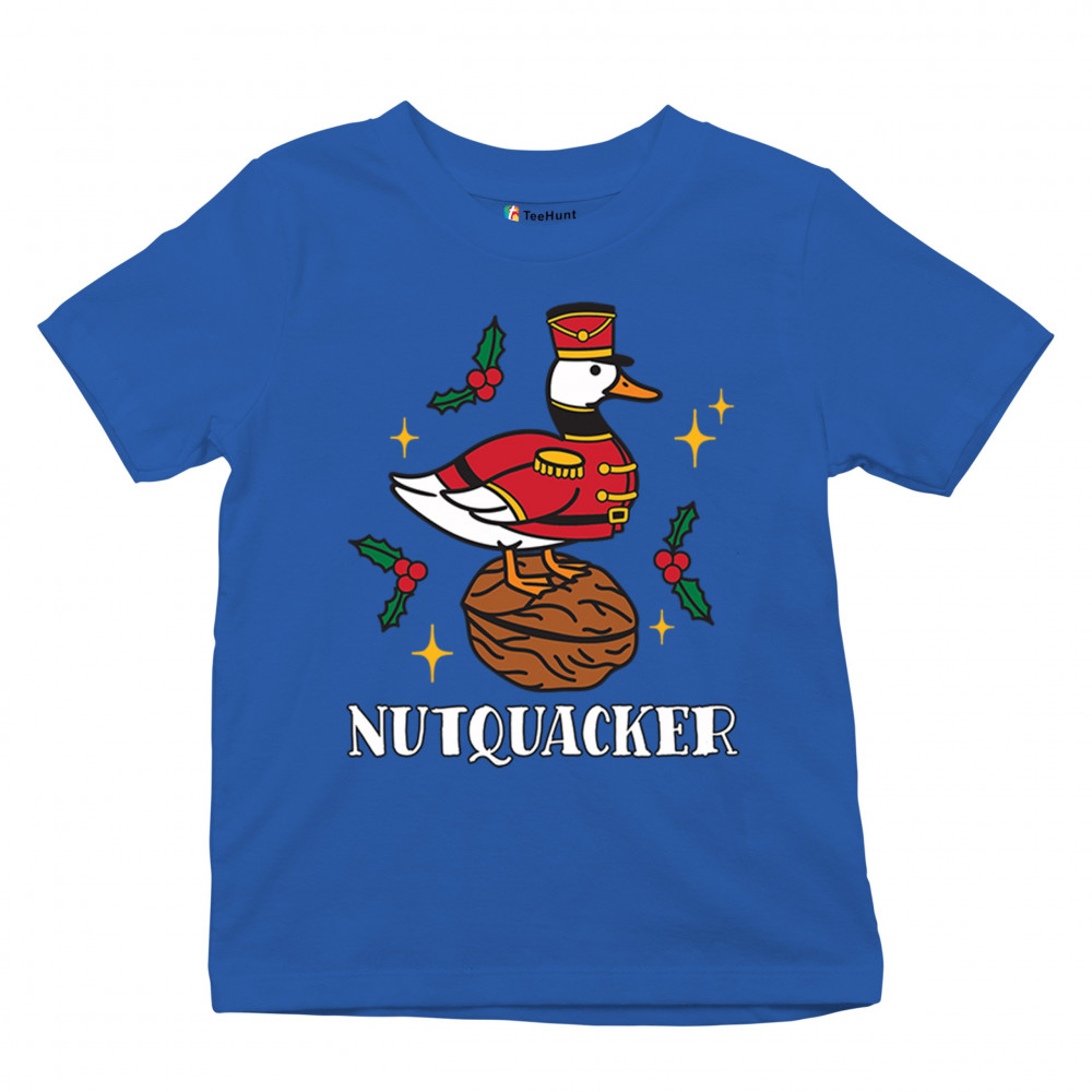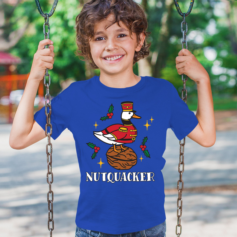 This hilarious Nutquacker design puts a festive spin on holiday humor, showcasing a duck dressed as a nutcracker standing on a walnut with holly accents and bright Christmas touches. A perfect choice for quirky gift-givers, holiday party outfits, and anyone who loves clever Christmas graphics that add personality, charm, and seasonal fun to their celebrations.