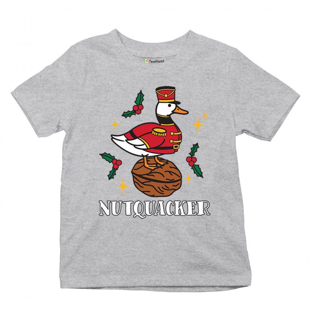 This hilarious Nutquacker design puts a festive spin on holiday humor, showcasing a duck dressed as a nutcracker standing on a walnut with holly accents and bright Christmas touches. A perfect choice for quirky gift-givers, holiday party outfits, and anyone who loves clever Christmas graphics that add personality, charm, and seasonal fun to their celebrations.