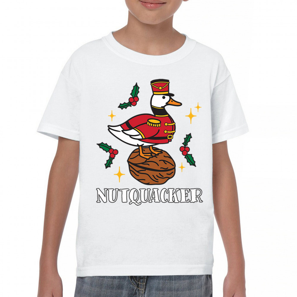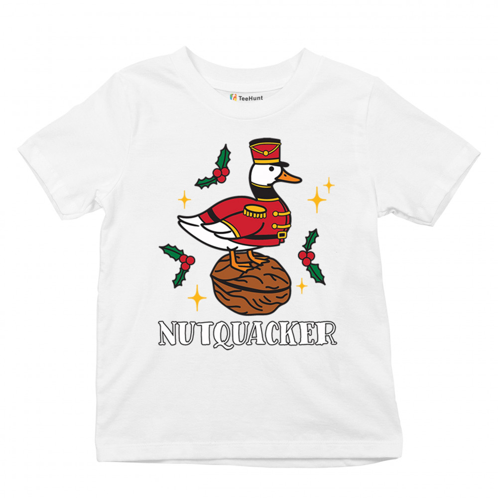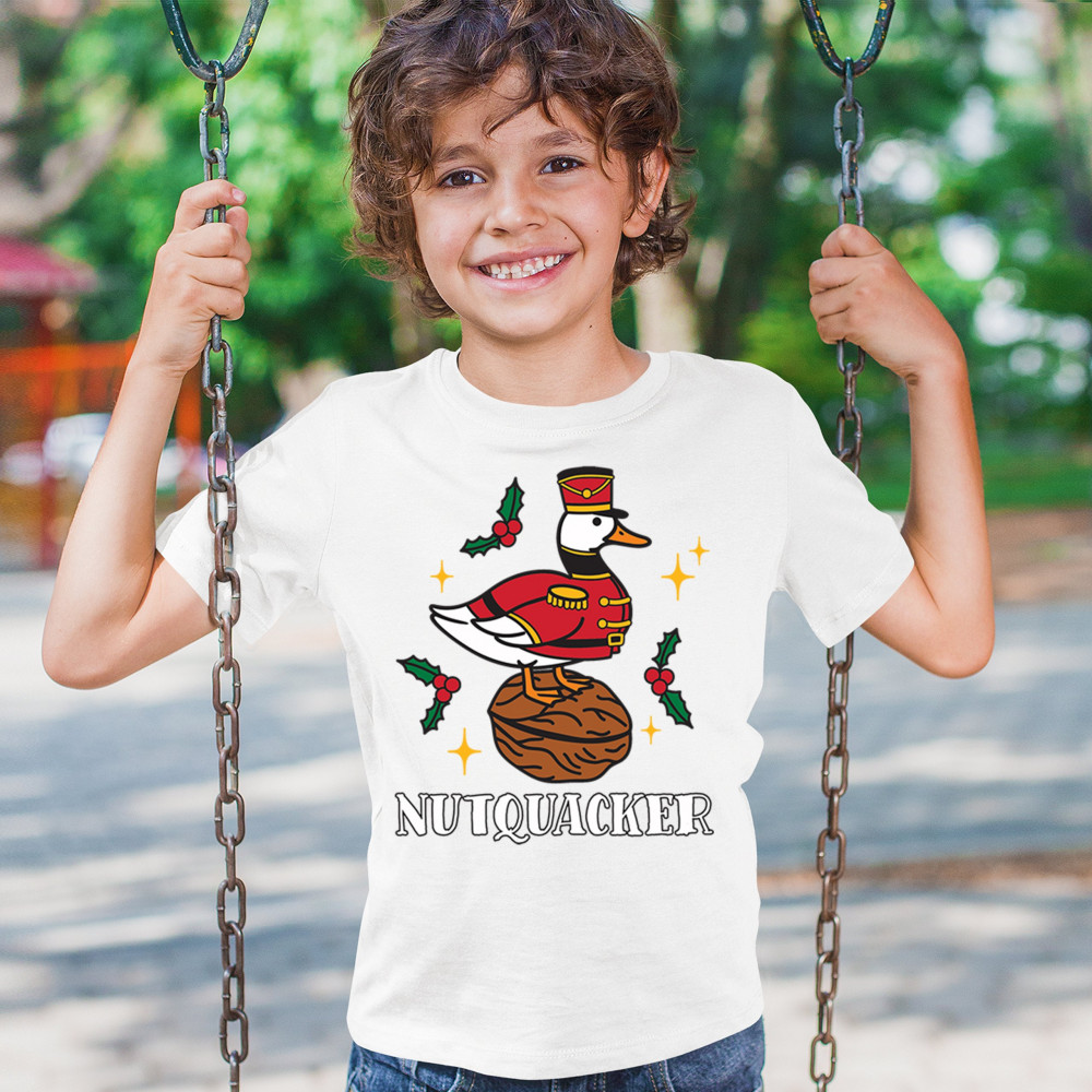 This hilarious Nutquacker design puts a festive spin on holiday humor, showcasing a duck dressed as a nutcracker standing on a walnut with holly accents and bright Christmas touches. A perfect choice for quirky gift-givers, holiday party outfits, and anyone who loves clever Christmas graphics that add personality, charm, and seasonal fun to their celebrations.
