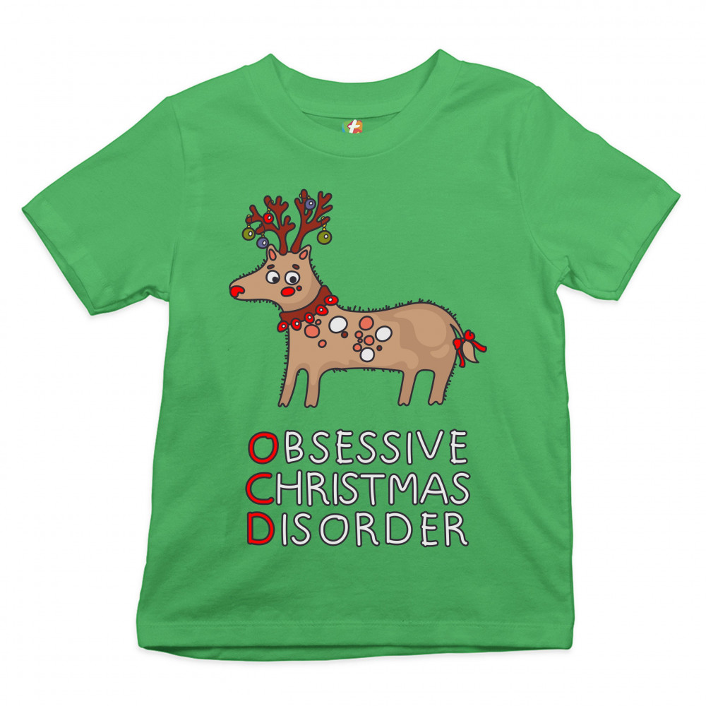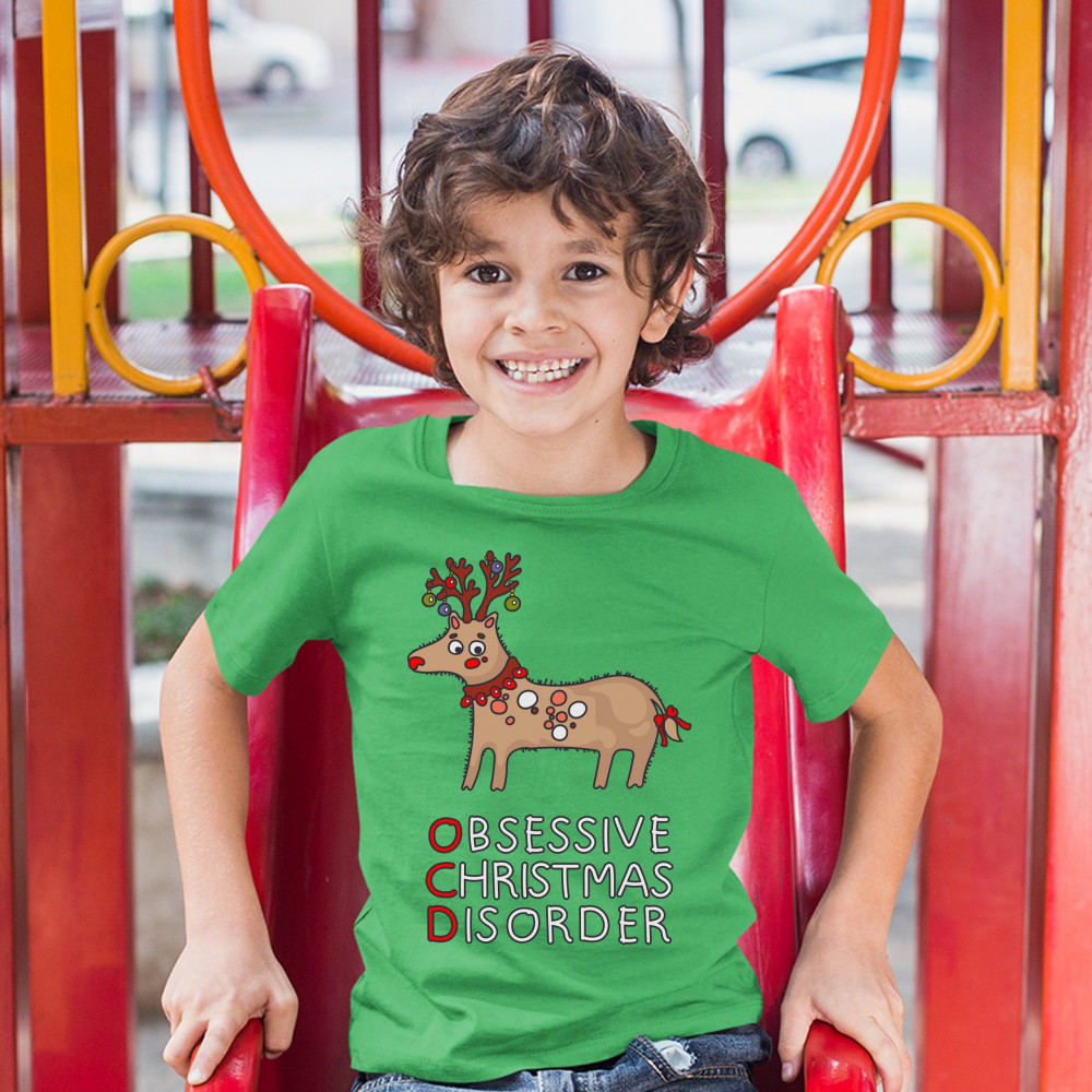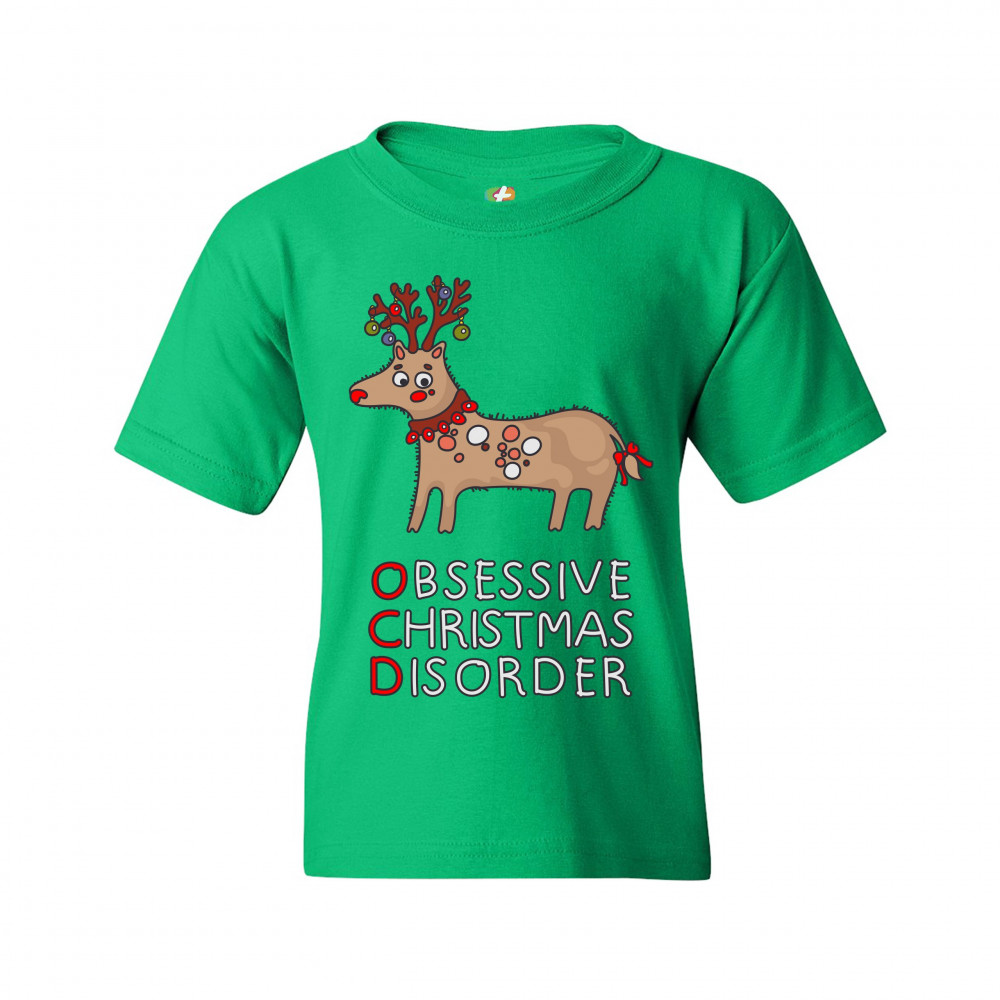 OCD OBSESSIVE CHRISTMAS DISORDER youth t-shirt reindeer rudolph funny kids green