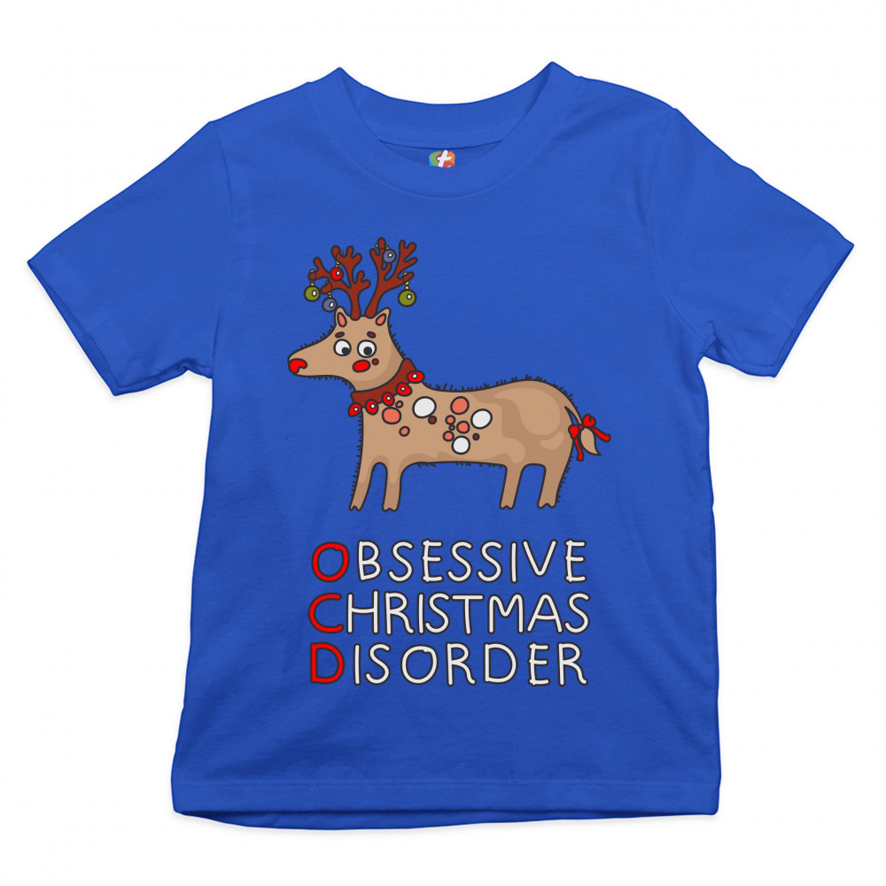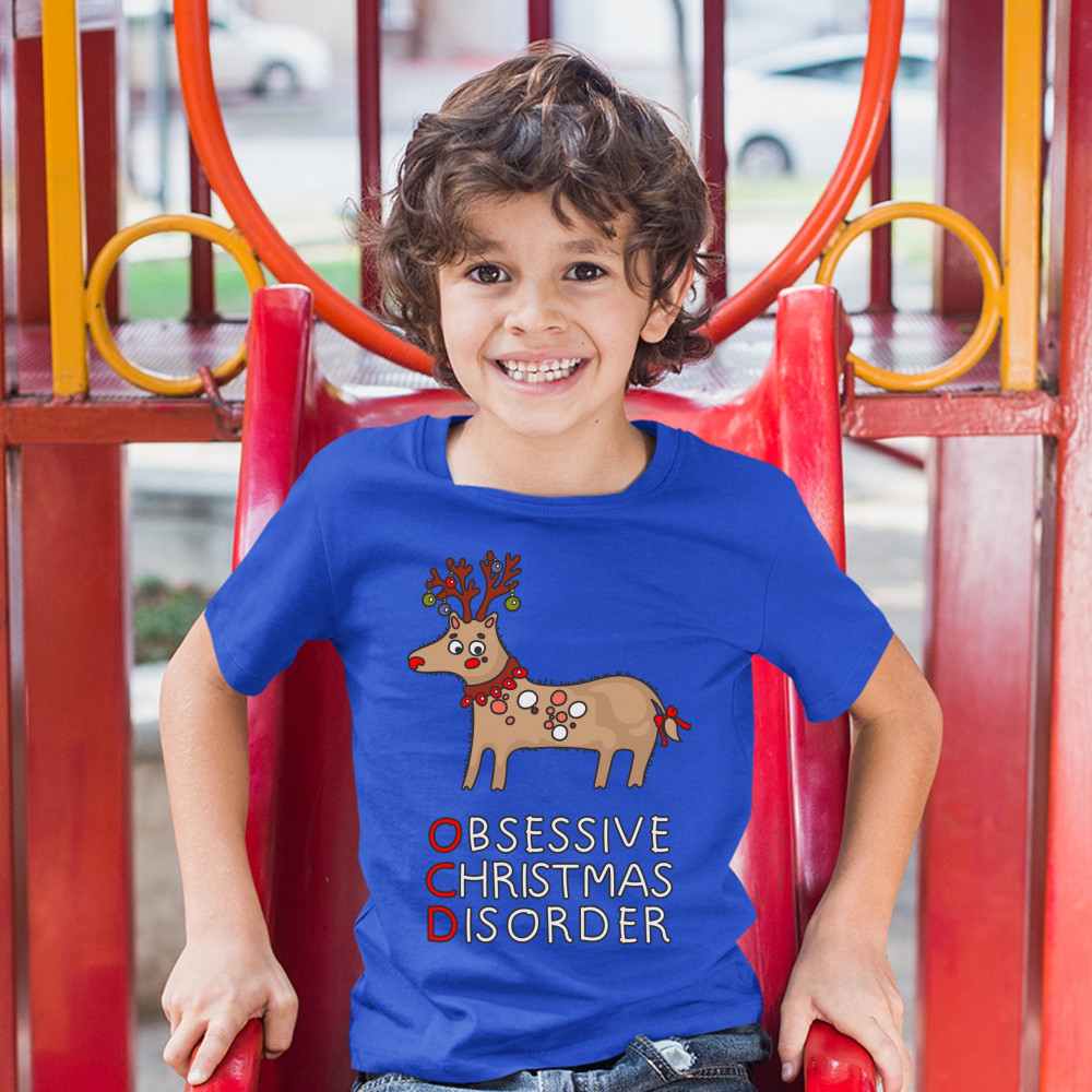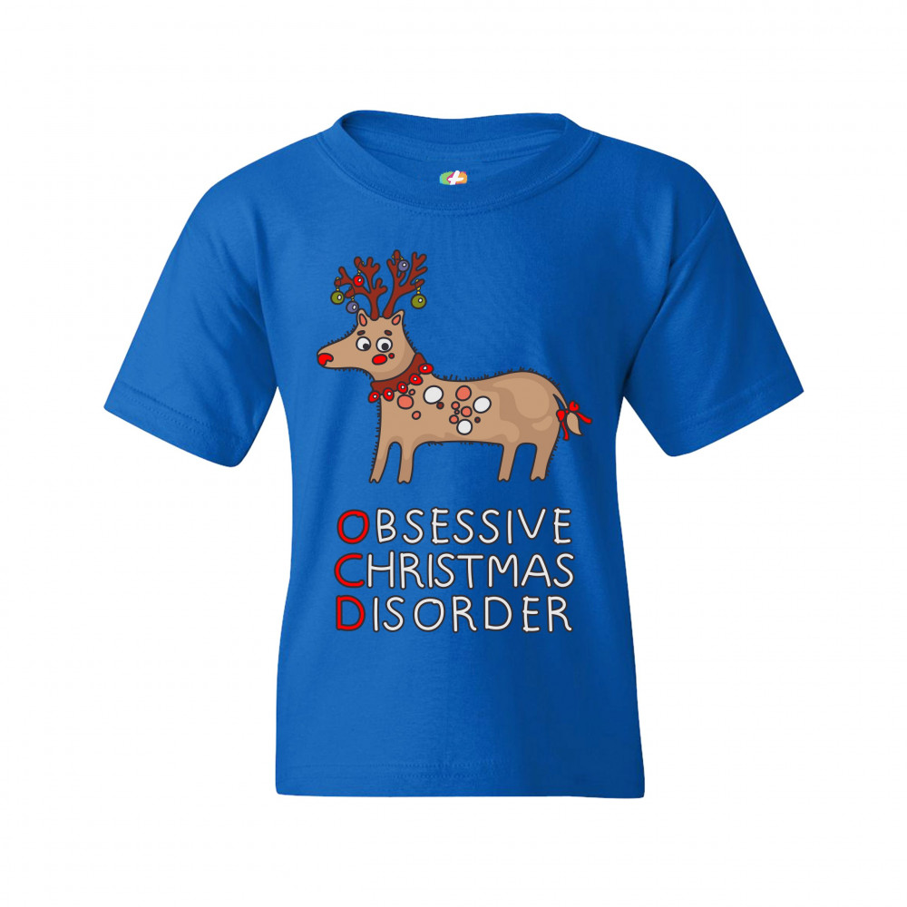 OCD OBSESSIVE CHRISTMAS DISORDER youth t-shirt reindeer rudolph funny kids royal blue