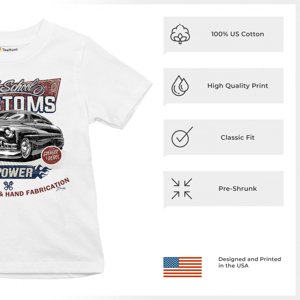 Step into the world of classic automotive culture with our "Old School Customs" t-shirt. Featuring a bold V8 power design, this shirt highlights the art of custom paint and hand fabrication. It's perfect for car enthusiasts, greasers, and rebels who appreciate the unique style of vintage rides. Made from high-quality materials, this tee offers comfort and durability, making it a great choice for car shows or casual outings. Show your love for old-school cars and stand out with this stylish and nostalgic piece. Add a touch of vintage charm to your wardrobe today.