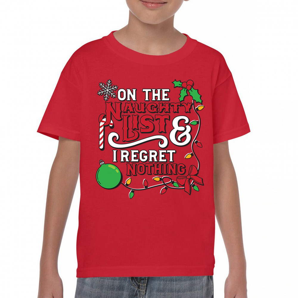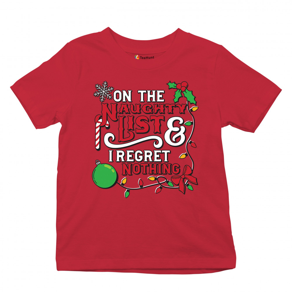 Celebrate the holidays with the playful “Naughty List & I Regret Nothing†design. Perfect for festive gatherings, ugly sweater parties, and holiday fun!