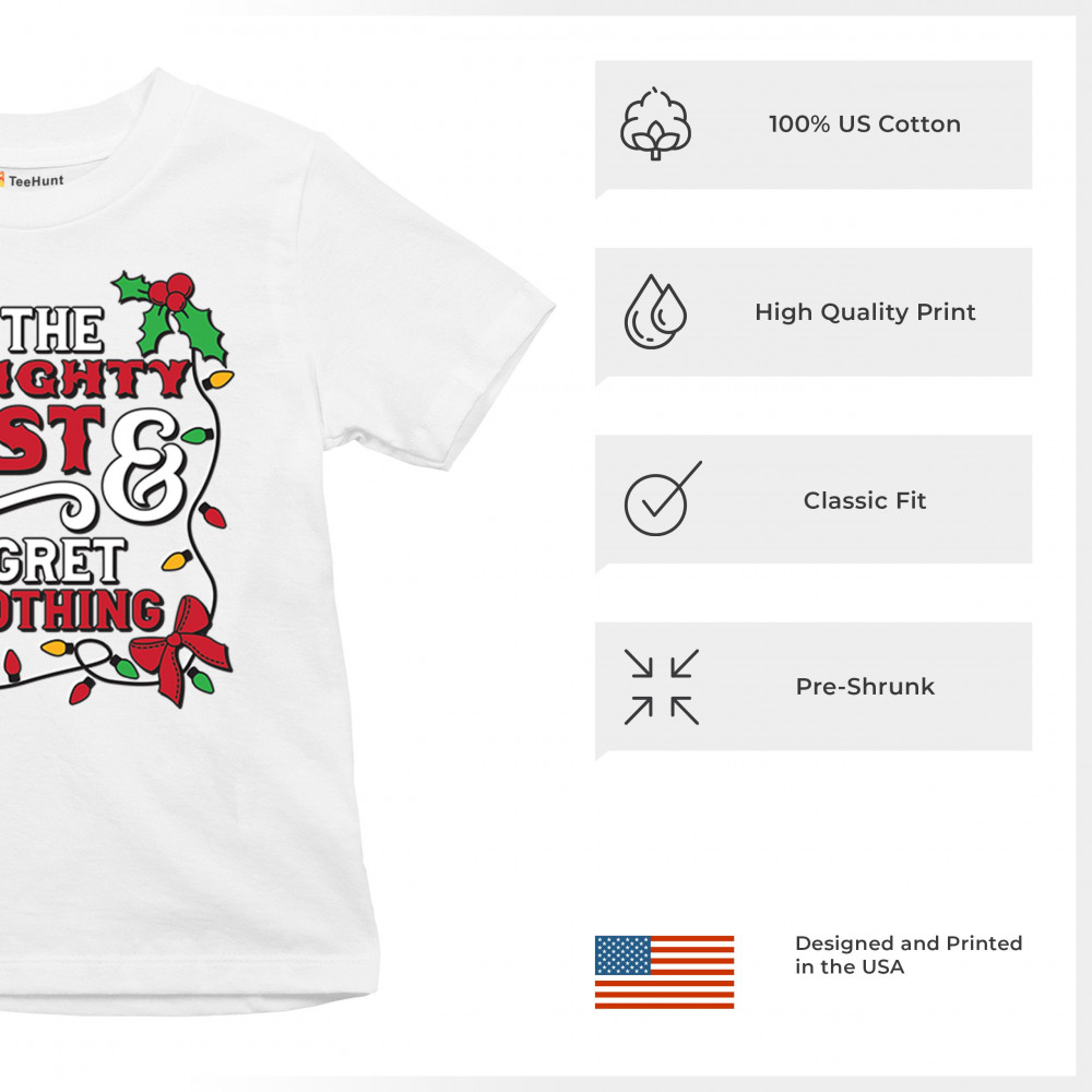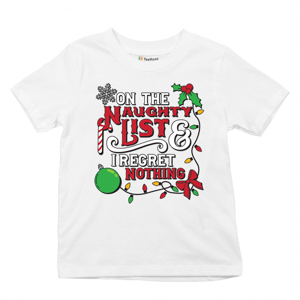 Celebrate the holidays with the playful “Naughty List & I Regret Nothing†design. Perfect for festive gatherings, ugly sweater parties, and holiday fun!