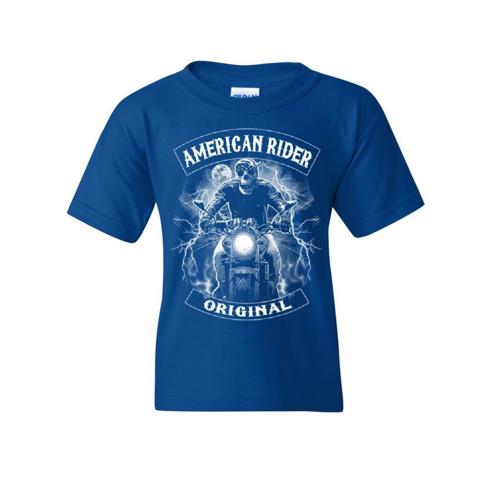 ORIGINAL AMERICAN RIDER youth t-shirt skull face route 66 biker mc kids tee royal blue