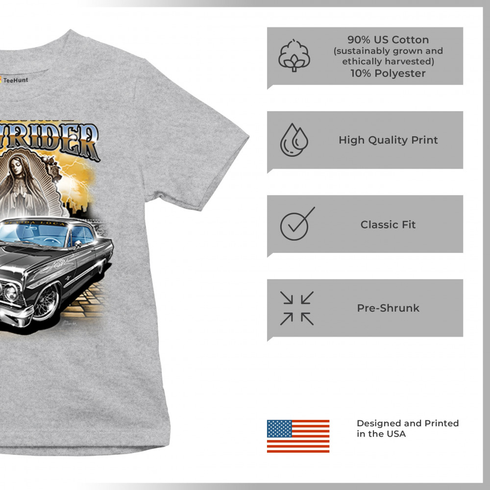 Unleash your love for custom cars with our "Original Lowrider" t-shirt. Showcasing a meticulously detailed 1964 lowrider, this shirt is a must-have for anyone passionate about car culture and street art. Whether you're attending a car show, hitting the streets, or just hanging out, this tee combines style and comfort. Made from premium materials, it ensures lasting quality and a great fit. Make your wardrobe stand out with this iconic lowrider design.